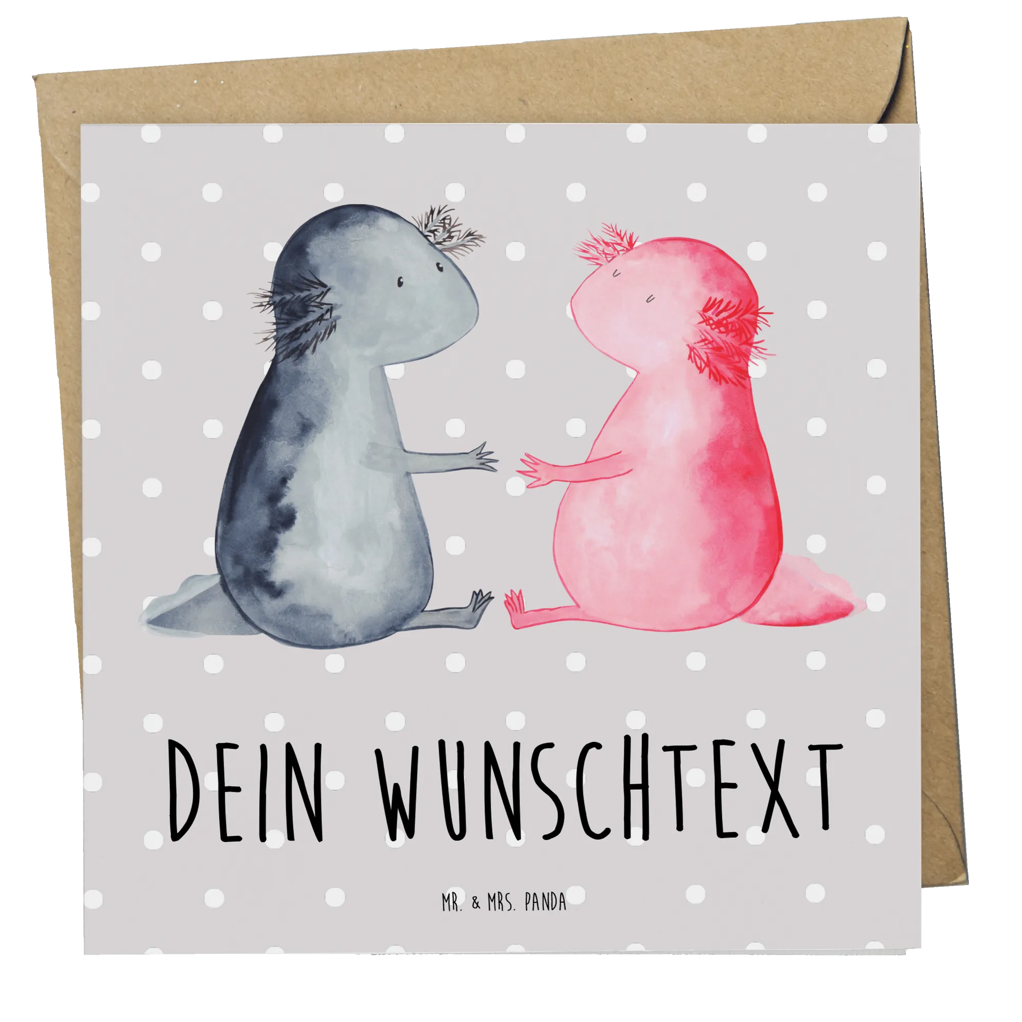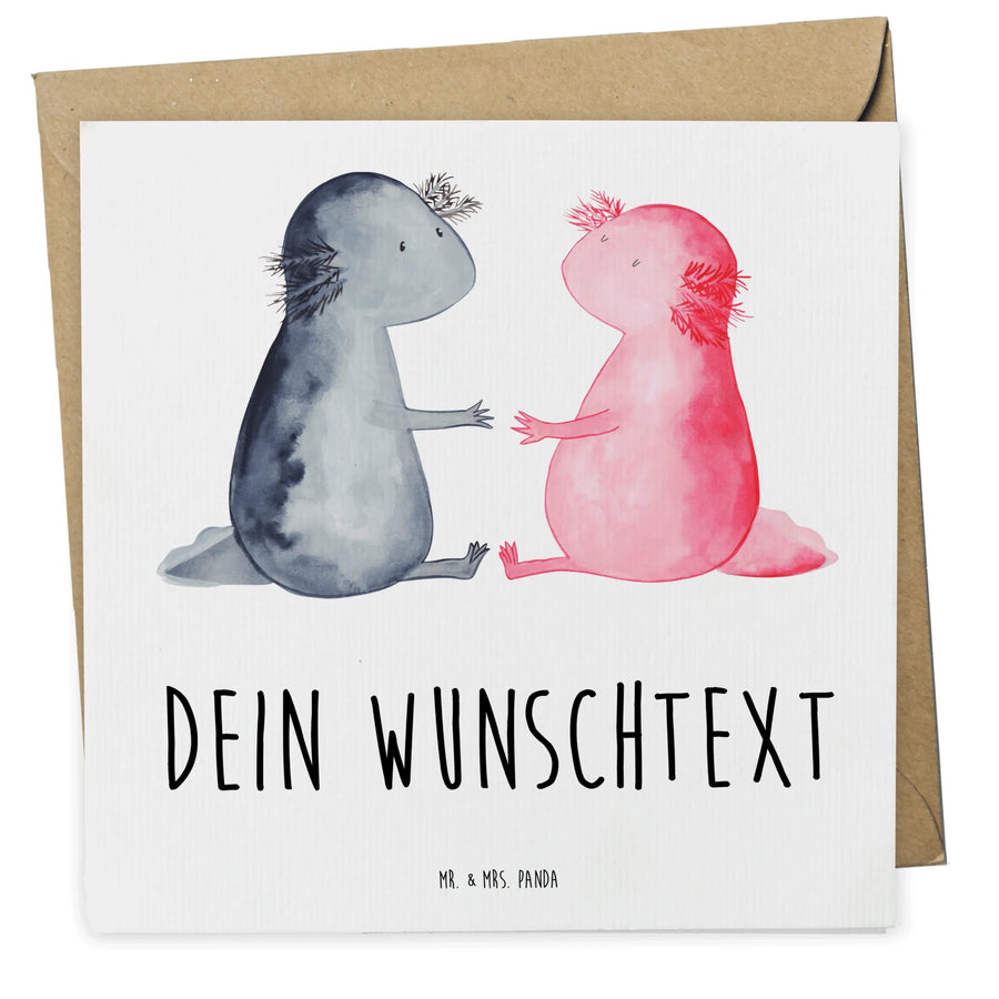 Die liebevollen Illustrationen von Mrs. Panda entführen dich in eine Welt voller Romantik und Herzlichkeit, und die Axolotl, die fröhlich nebeneinander sitzen, lassen jedes Herz höherschlagen. Egal, ob du es jemandem schenkst, um ihn zu ermutigen, ihm zu gratulieren oder einfach eine Botschaft der Liebe zu überbringen – diese personalisierte Karte wird garantiert ein Lächeln hervorrufen. Perfekt auch als kreative Geldgeschenk-Karte oder für besondere Anlässe, an denen du deine Wertschätzung zeigen möchtest.