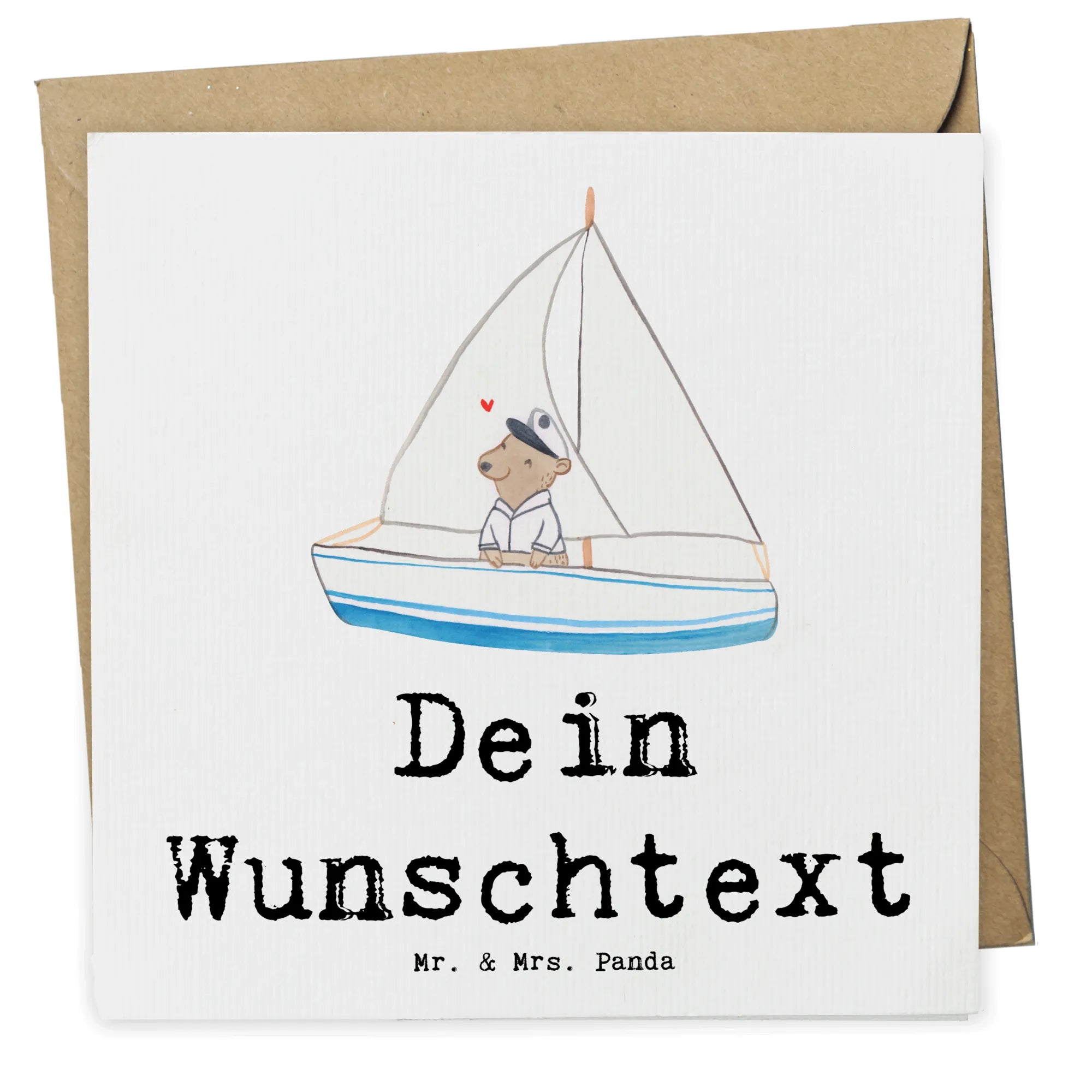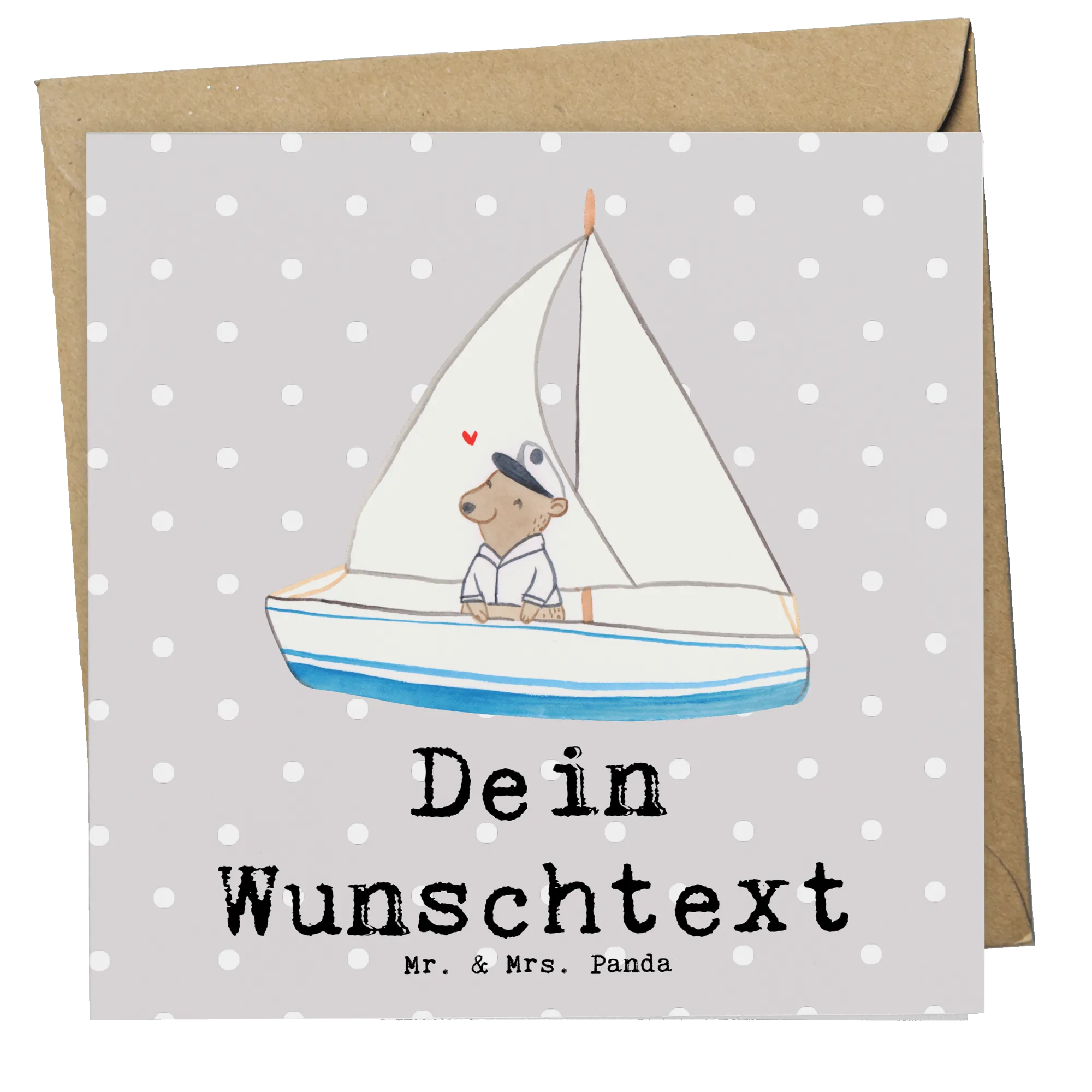 Die personalisierte Deluxe Karte "Bär Segeln Tage" von Mr. & Mrs. Panda ist das perfekte Geschenk für alle, die sich für das Segeln und die Seefahrt begeistern. Ein liebevoll gestalteter Bär mit einem Matrosenhut segelt fröhlich auf einem Segelboot über das Wasser und bringt damit die Freude und Freiheit des Segelns direkt zu dir!