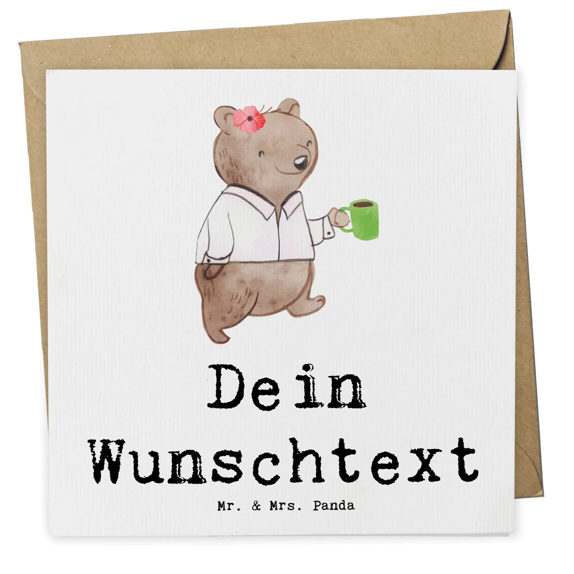 Mit viel Liebe zum Detail ist die Karte aus hochwertigem 300 Gramm Karton gefertigt und glänzt durch ihre edle Optik. Auf der Vorderseite prangt das niedliche Motiv eines kleinen Bären mit einer Kaffeetasse in der Hand, unterstrichen von dem humorvollen Spruch: "Du bist nur ein halber Mensch, wenn du keine CEO bist." Damit wird jeder CEO oder Geschäftsführer gewürdigt und zeigt, wie sehr man seine Arbeit schätzt.