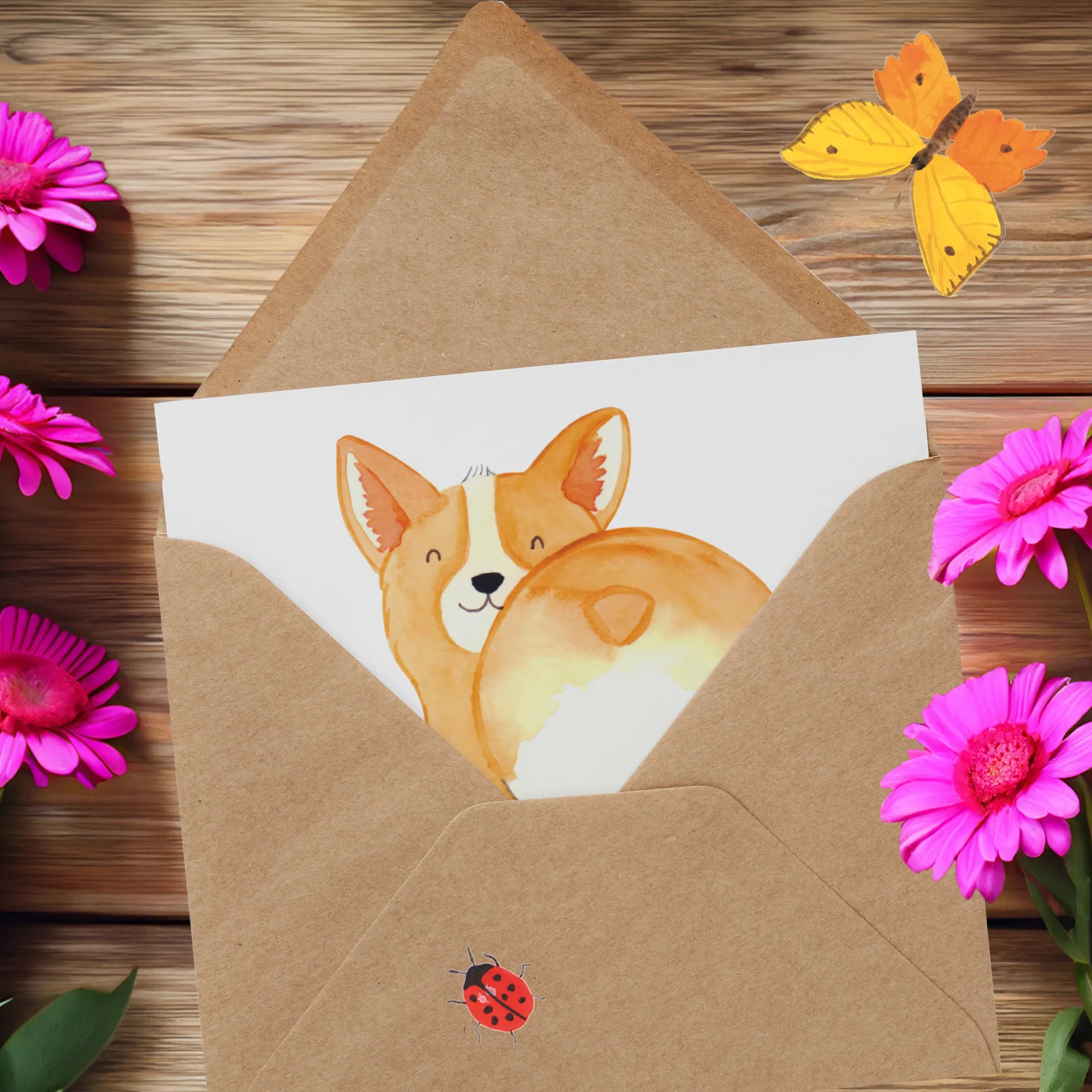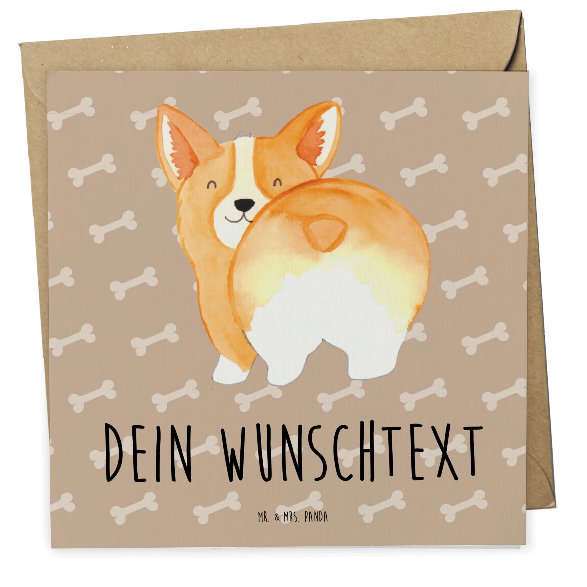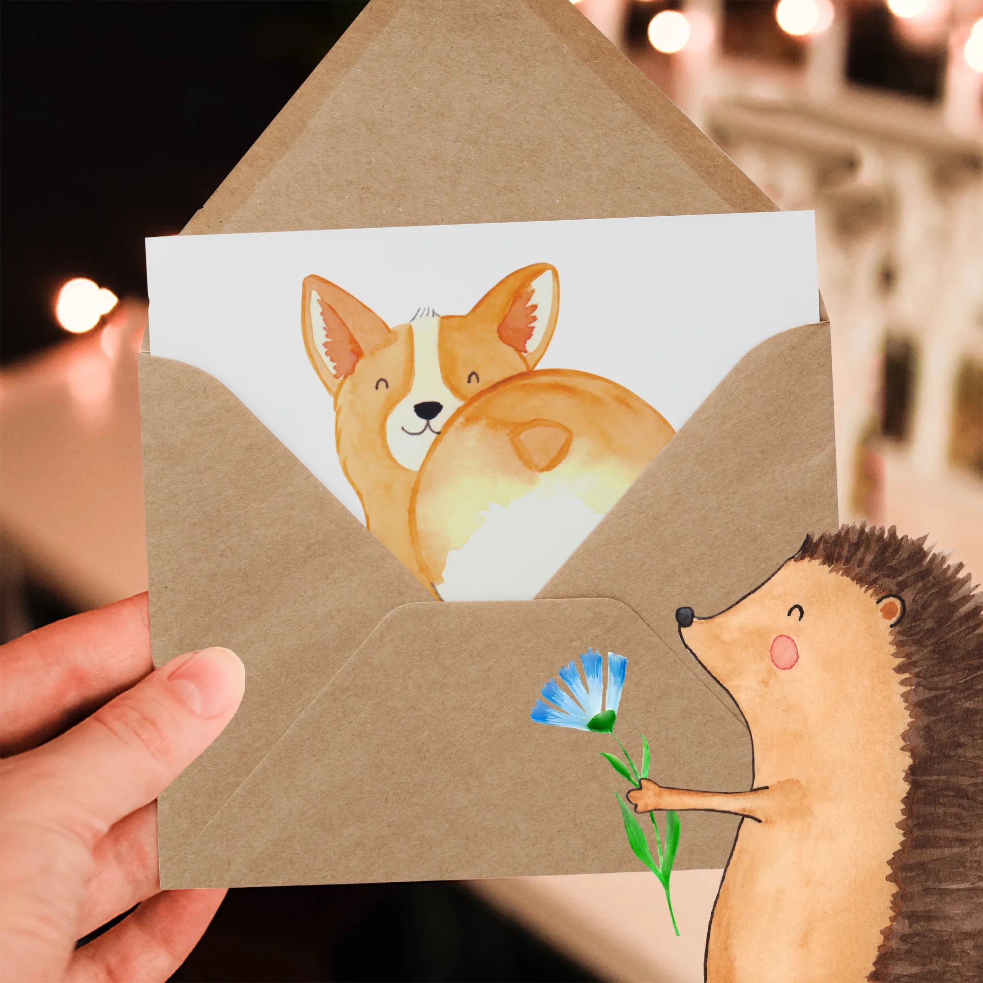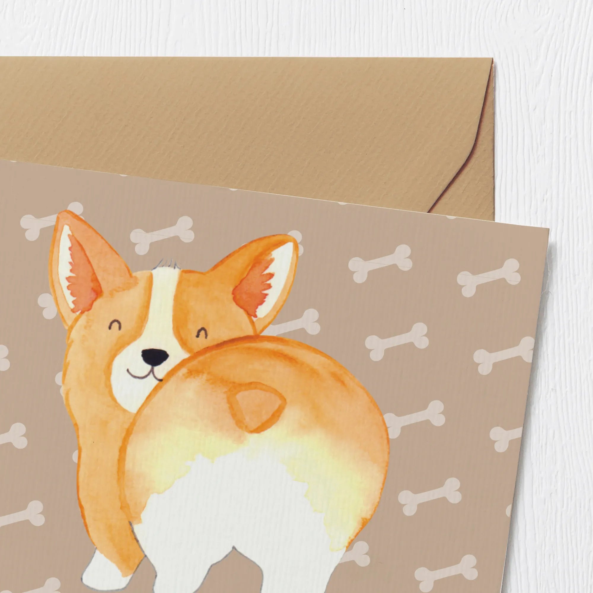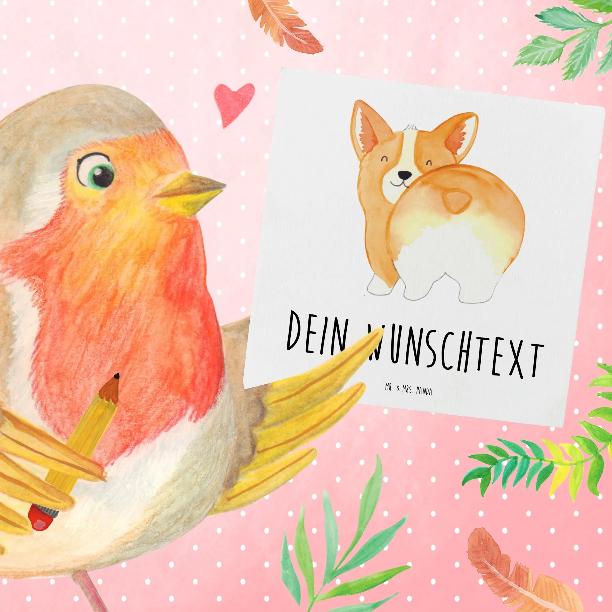 Die Vorderseite ziert ein süßer Corgi, der stolz seinen Po in die Kamera hält, während auf der Rückseite ein liebevoller Spruch darauf wartet, von dir persönlich ergänzt zu werden. Die matte Innenseite ermöglicht es dir, deine ganz eigenen Worte zu wählen, während die hochglänzend veredelte Vorderseite und Rückseite jedem Anlass einen festlichen Touch verleihen.