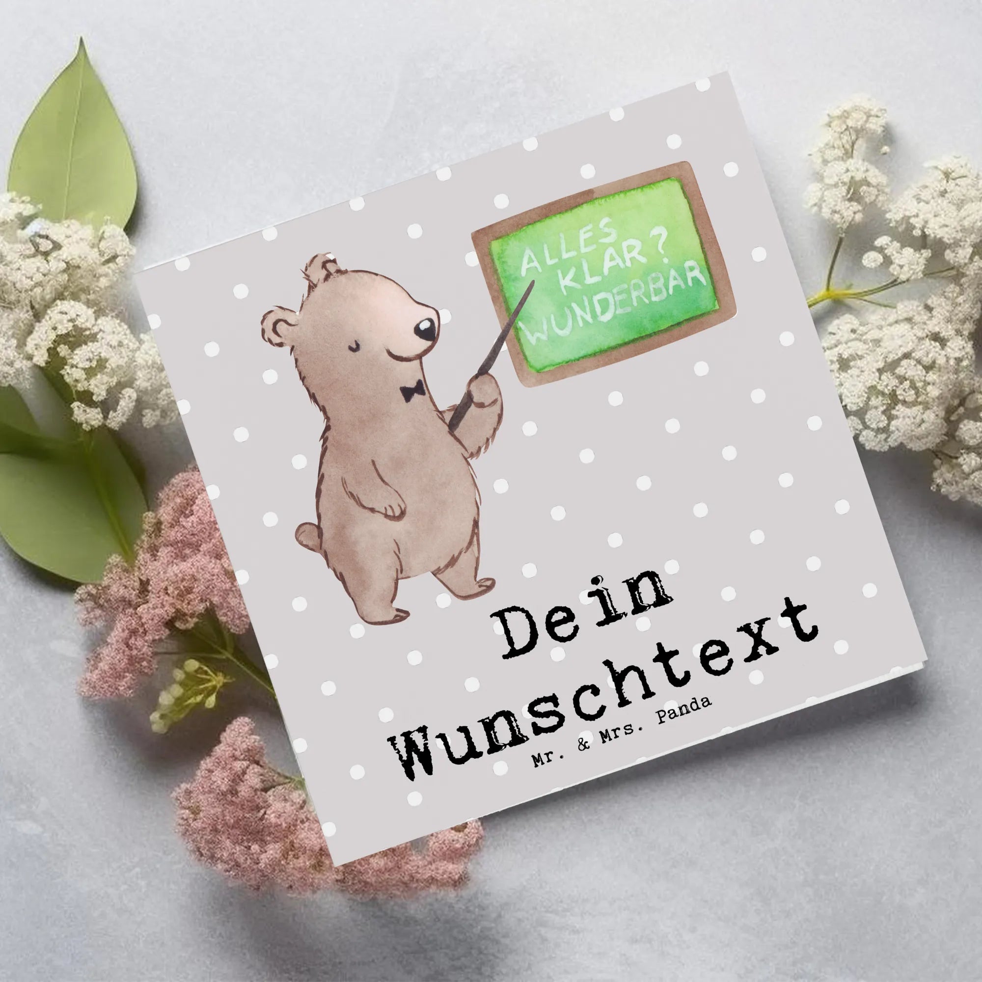Diese Karte ist nicht nur ein Geschenk, sondern ein Stück Wertschätzung, das von Herzen kommt. Die niedlichen Motive von Mrs. Panda sind einzigartig und bringen jedem Beschenkten ein Lächeln ins Gesicht. Gerade wenn es mal etwas trister in der Schule erscheint, bringt unser kleiner Bär ein wenig Freude und Farbe in den Unterricht.