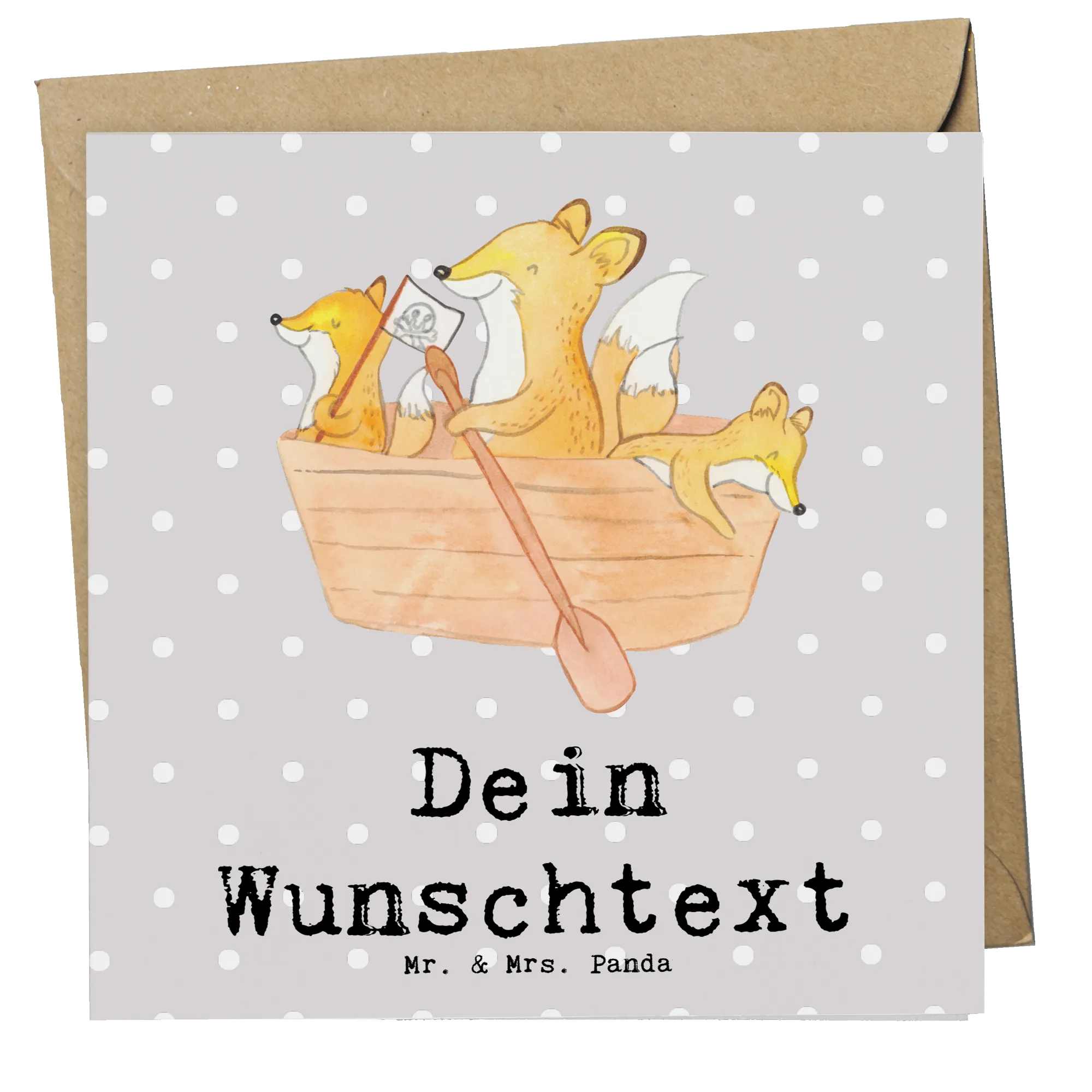 Die hochwertige Karte misst 140 mm x 140 mm und besteht aus edlem 300 Gramm Karton, welcher sowohl robust als auch ansprechend wirkt. Mit dem liebevoll gestalteten Design, das drei süße Füchse zeigt, die gemeinsam in einem Kanu paddeln, wird jeder, der diese Karte erhält, sicher begeistert sein.