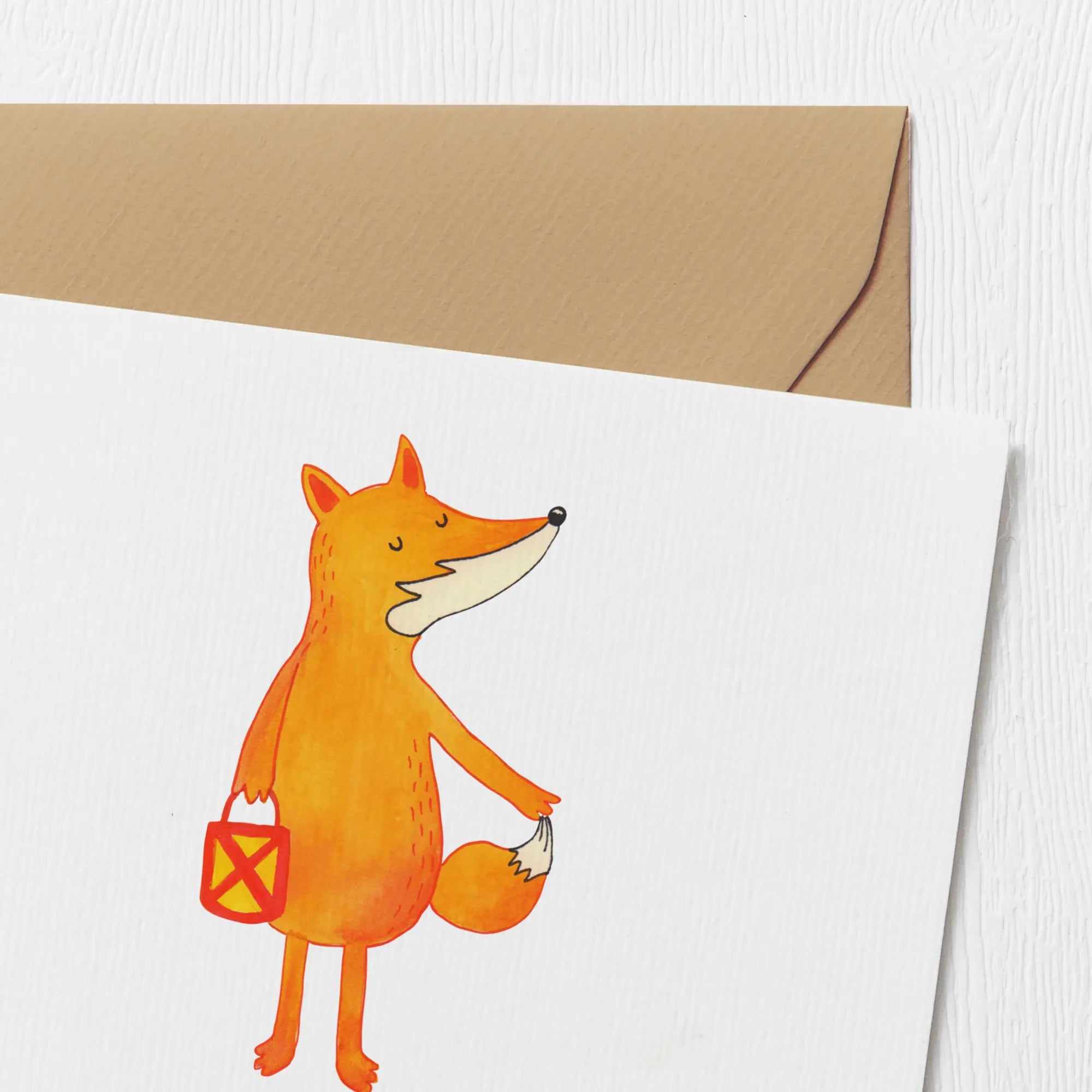 Mit einem liebevoll gestalteten Motiv eines süßen Fuchses, der mit seiner Laterne durch die Dunkelheit schreitet, versprüht die Karte eine warme und gemütliche Atmosphäre. Die Fuchs Kollektion von Mr. & Mrs. Panda ist bekannt für ihre liebevollen Designs und Lebensfreude, die jedes Produkt einzigartig machen.