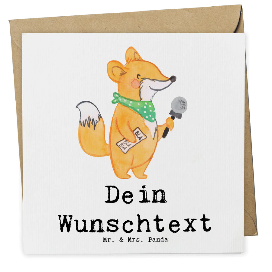 Die personalisierte Deluxe Karte "Journalist mit Herz" von Mr. & Mrs. Panda ist das ideale Geschenk für alle Journalisten, Reporter und Redakteure in deinem Leben. Egal, ob Du eine Einladung zu einem besonderen Ereignis brauchst oder einfach nur Deiner Wertschätzung Ausdruck verleihen möchtest, diese Karte ist perfekt für jede Gelegenheit. Die hochwertige und liebevoll gestaltete Karte zeigt einen niedlichen Fuchs mit Mikrofon und dem Slogan "Du bist nur ein halber Mensch, wenn du kein Journalist bist". Dieses Motto wird sicherlich ein Lächeln auf das Gesicht jedes Journalisten zaubern! So verschenkst Du nicht einfach nur eine Karte, sondern eine persönliche Botschaft voller Herz.