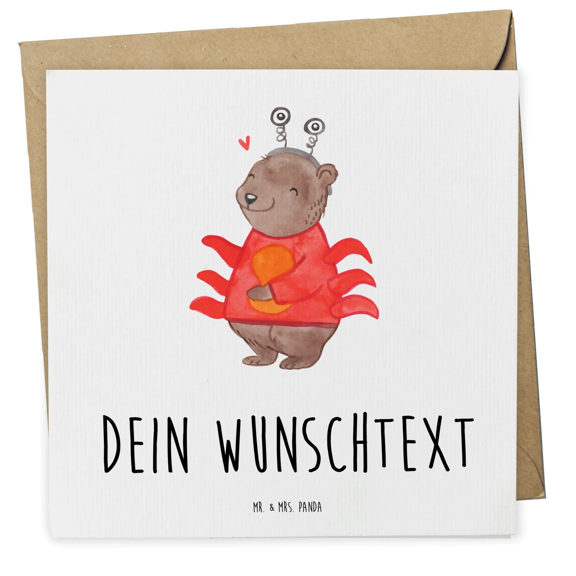 Die personalisierte Deluxe Karte mit dem zauberhaften Motiv Krebs ist das perfekte Geschenk für alle, die eine liebevolle Note zur Feier besonderer Anlässe suchen. Egal ob zum Geburtstag, zur Hochzeit oder einfach nur so, diese Grußkarte aus der charmanten Sternzeichen-Kollektion von Mr. & Mrs. Panda verleiht jedem Gruß eine persönliche Note. Mit einem niedlichen Bärchen im Krebskostüm und der Botschaft „Krebs: Sanft wie der Mond, tief wie das Meer“ spricht sie besonders Krebse und ihre Liebsten an.