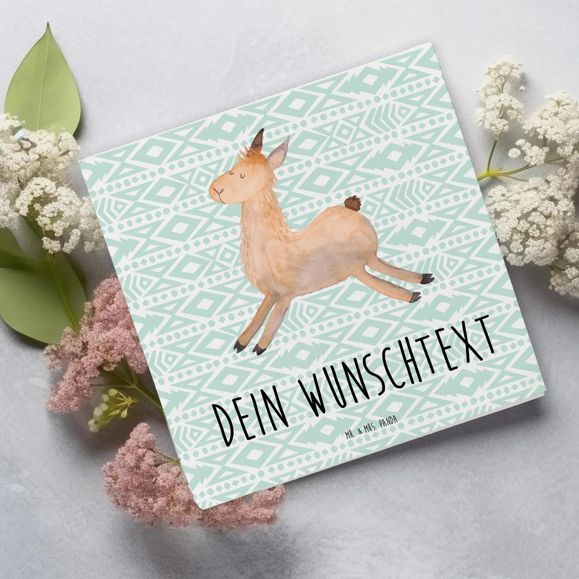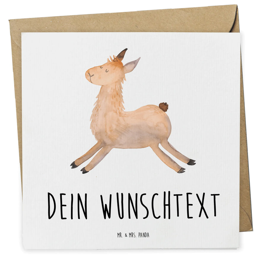 Entdecke die zauberhafte personalisierte Deluxe Karte mit dem fröhlichen Motiv "Lama springend" aus der einzigartigen Lama-Kollektion von Mr. & Mrs. Panda! Diese wunderschöne und besonders hochwertige quadratische Karte ist das perfekte Geschenk für alle, die das Besondere lieben.