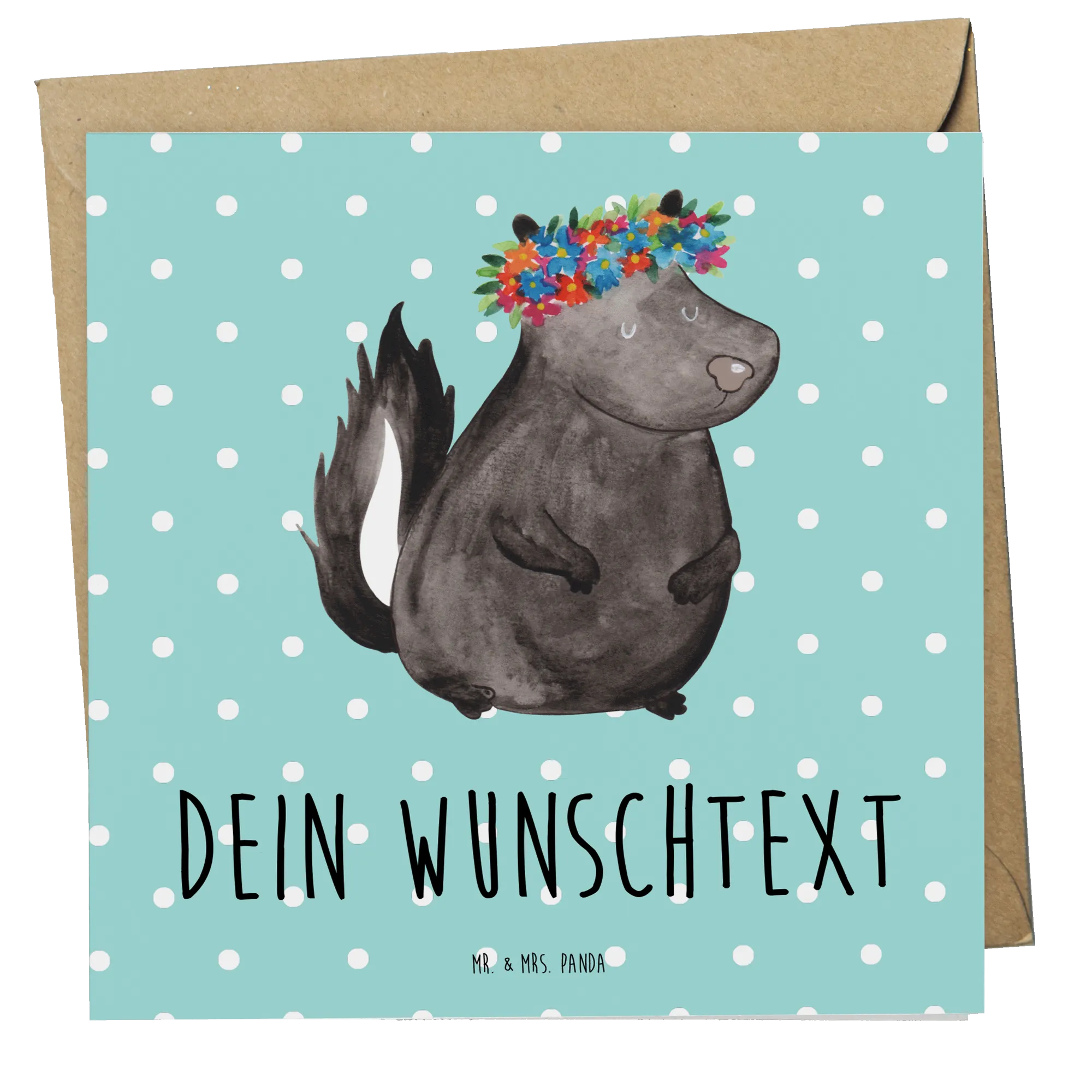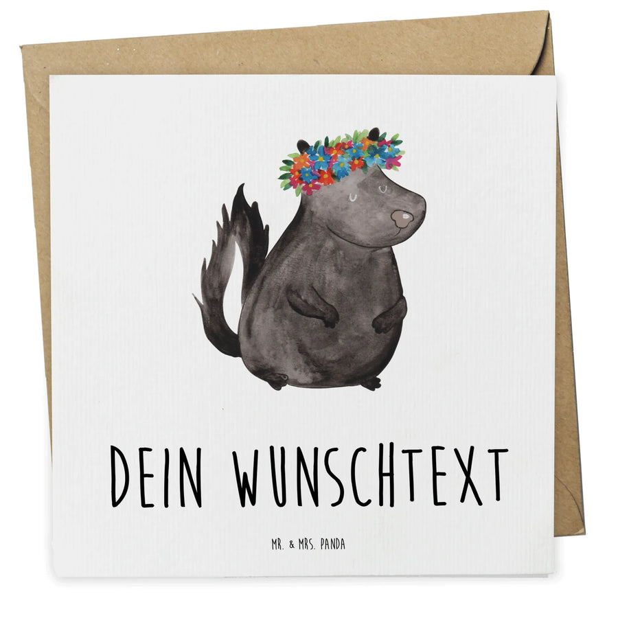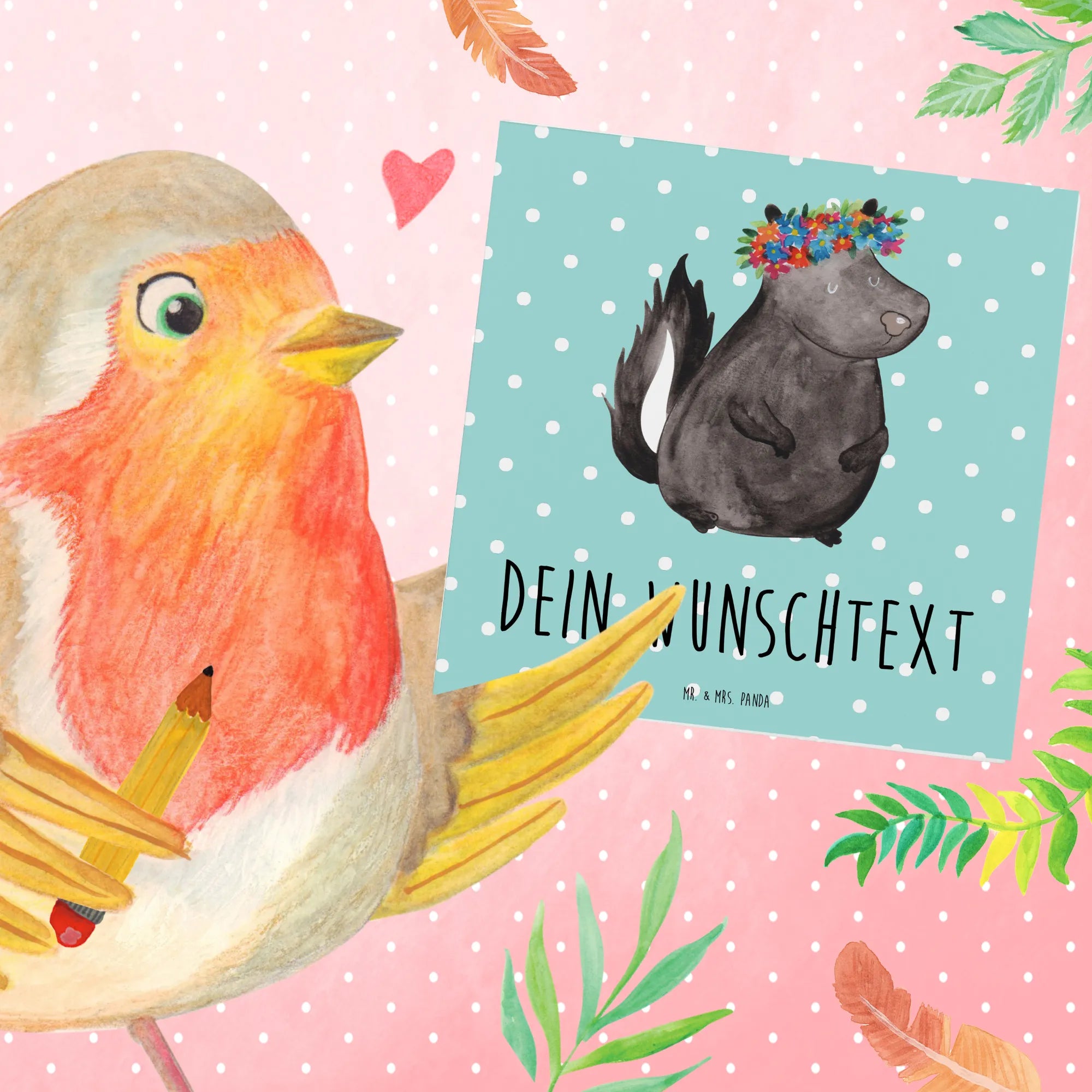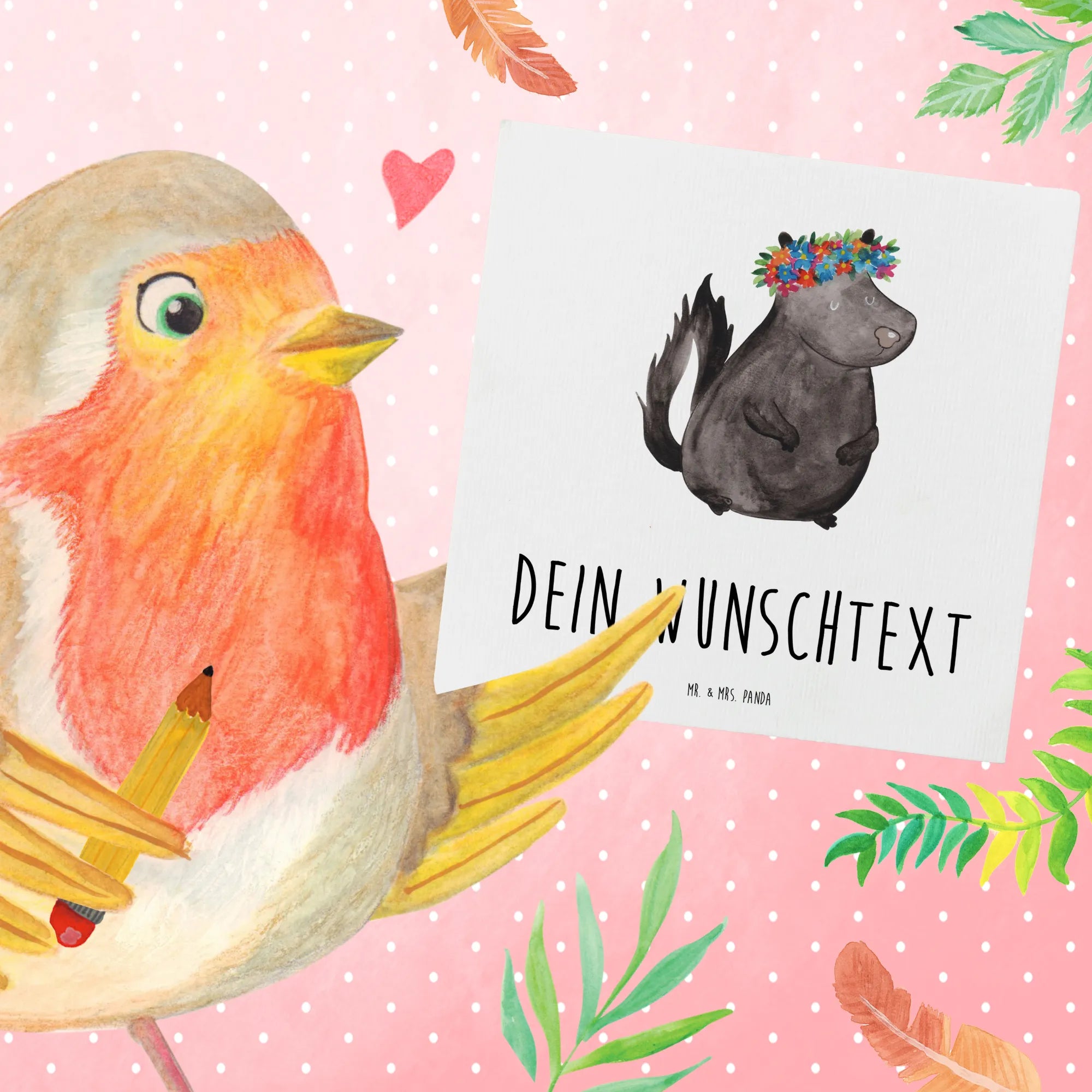Überrasche Deine Liebsten mit der personalisierten Deluxe Karte "Stinktier Blumenmädchen" aus der Stinktier-Kollektion von Mr. & Mrs. Panda! Diese einzigartige Karte ist perfekt für jeden Anlass - sei es ein Geburtstag, eine Hochzeit oder einfach nur, um jemandem zu zeigen, dass Du an ihn denkst.