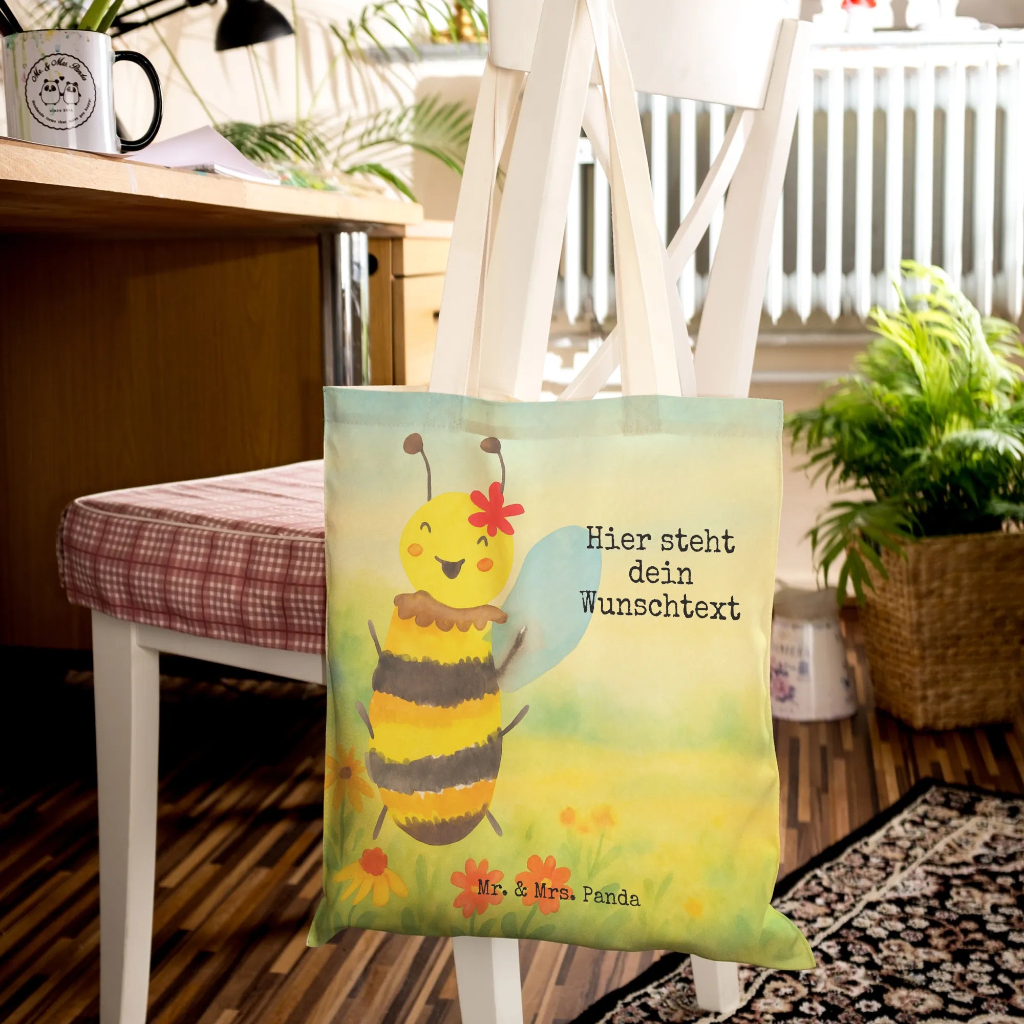 Flieg fröhlich durch den Alltag mit der „Biene Happy“ Einkaufstasche von Mr. & Mrs. Panda! Diese personalisierte Tragetasche verbindet ein liebevolles Design mit praktischem Nutzen. Die niedliche Biene mit einer Blume auf dem Kopf und der Slogan „Bee happy“ bringen gute Laune in jeden Einkauf und zaubern ein Lächeln auf dein Gesicht.