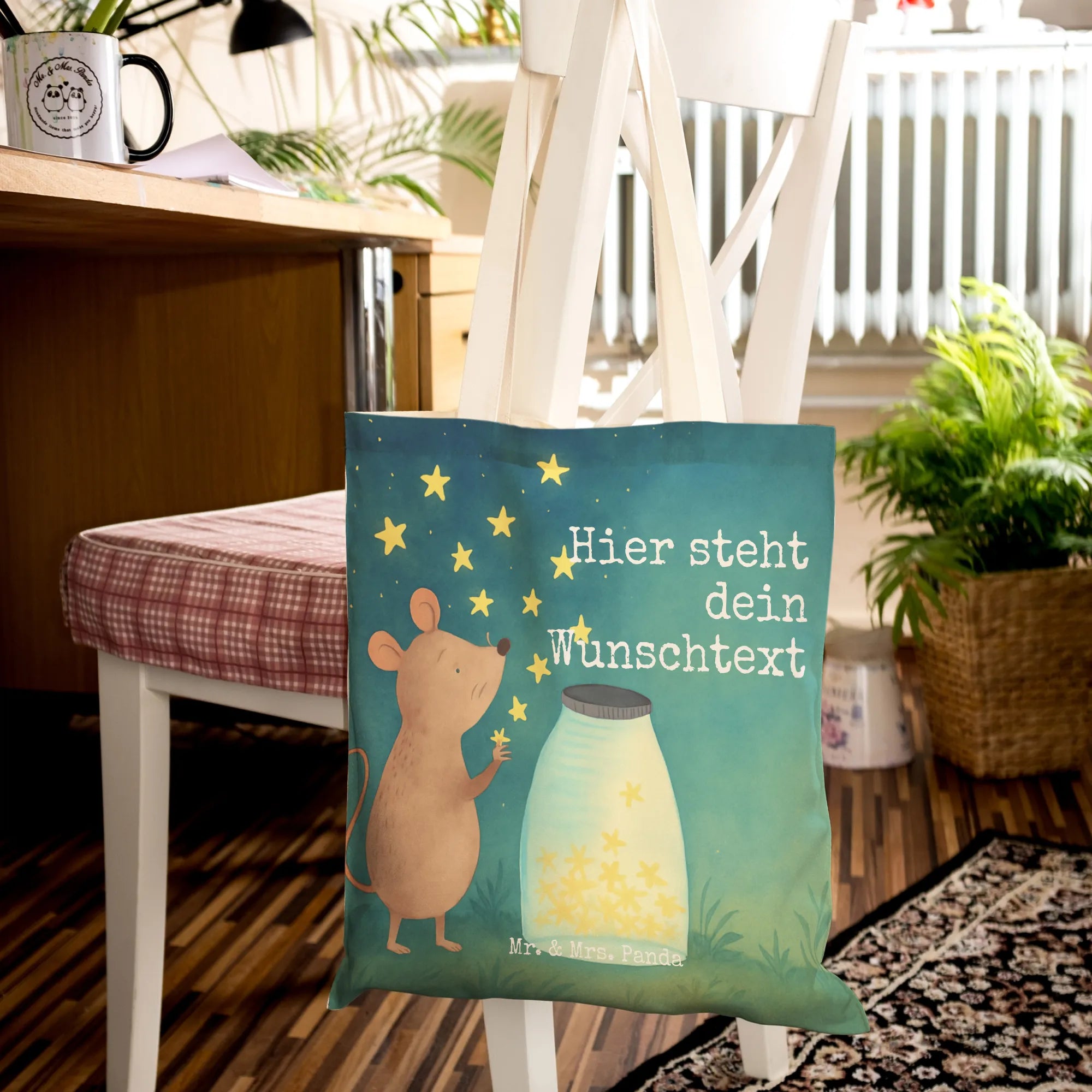 Personalisierte Einkaufstasche Maus Sterne Design