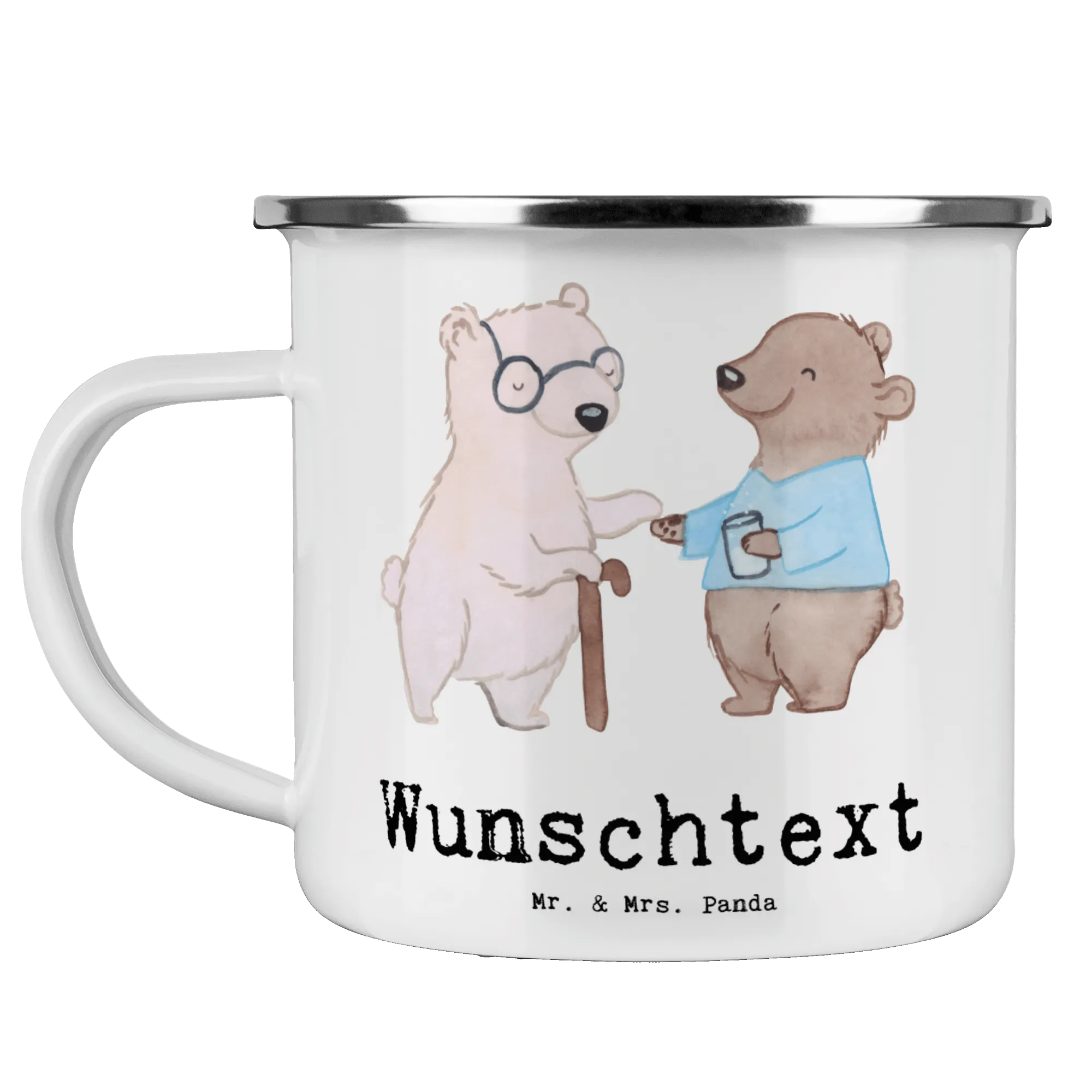 Verschenk Anerkennung, Wärme und ein Lächeln – mit der personalisierbaren Emaille Tasse Altenpfleger mit Herz von Mr. & Mrs. Panda. Ein kleines Geschenk mit großer Wirkung, das sagt: Danke, dass es dich gibt.