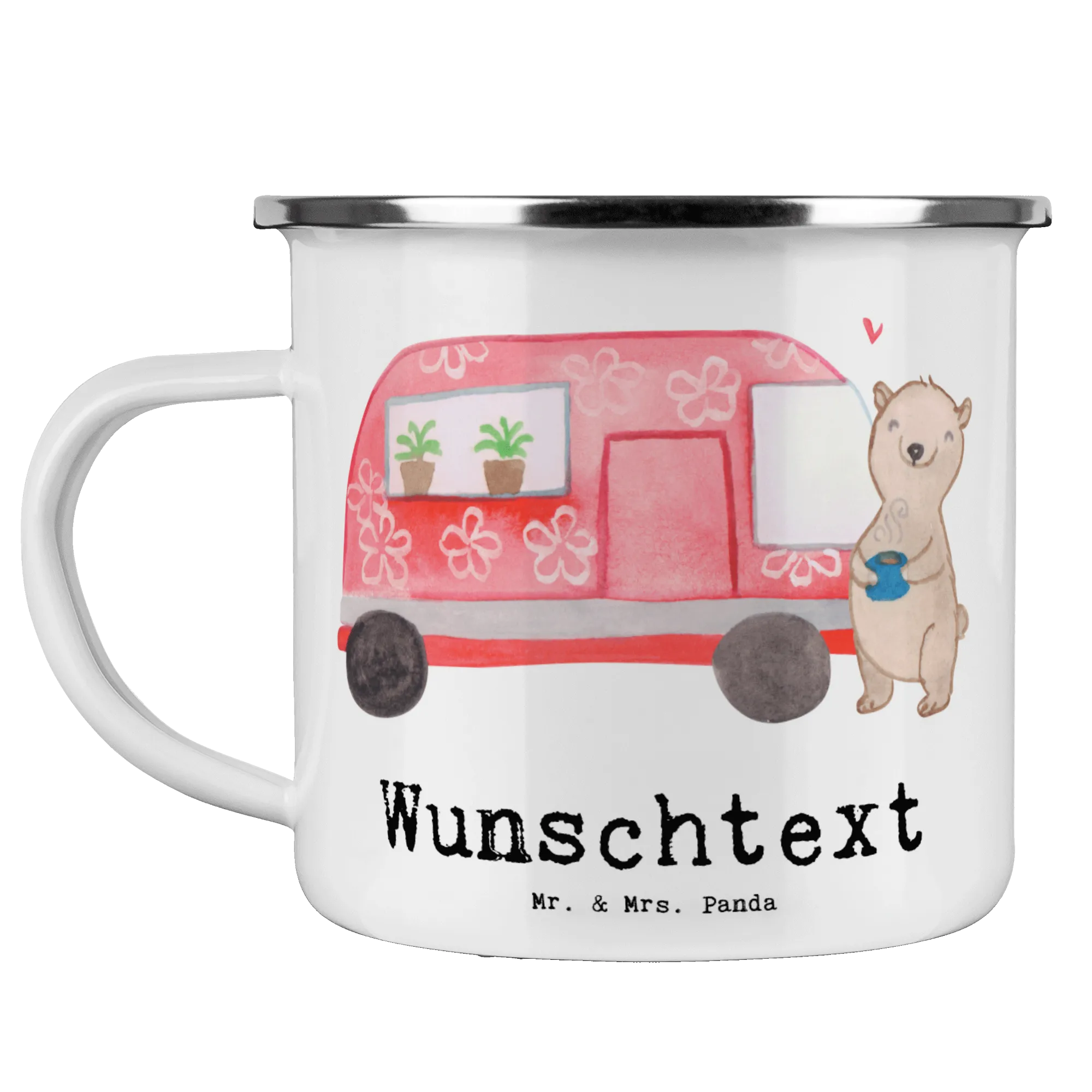 Personalisierte Emaille Tasse Bär Camper