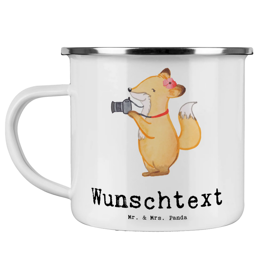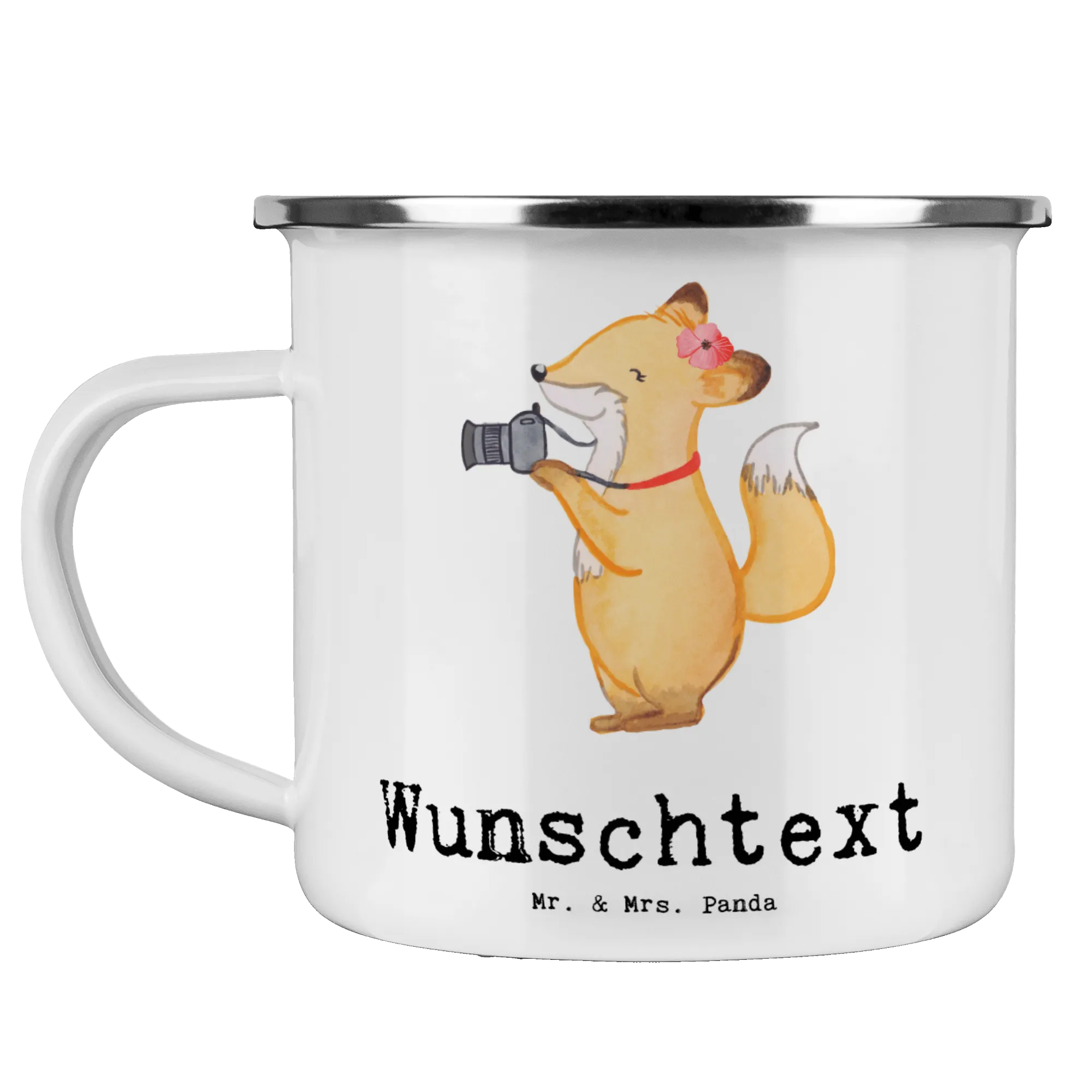 Die personalisierte Emaille Tasse mit dem bezaubernden Motiv 'Fotografin mit Herz' ist das perfekte Geschenk für jede passionierte Fotografin oder Hobbyfotografin.