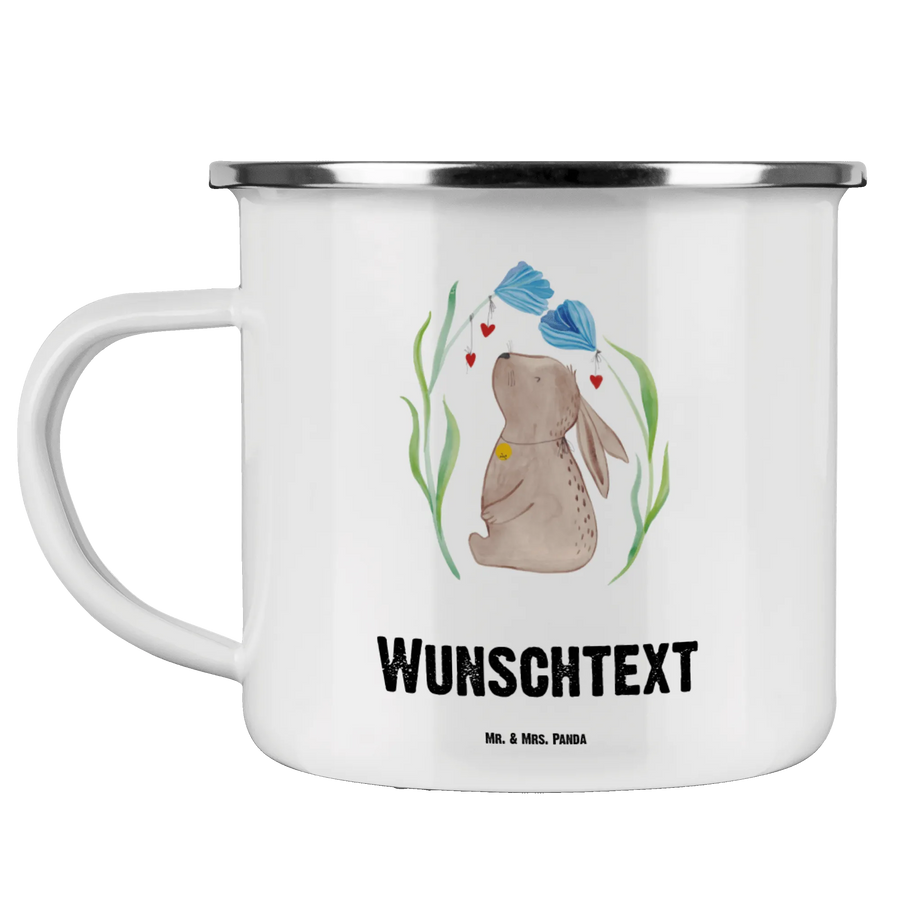 Entdecke die wunderbare personalisierte Emaille Tasse mit dem niedlichen Motiv "Hase Blume" aus der Ostern-Kollektion von Mr. & Mrs. Panda! Diese zauberhafte Tasse ist nicht nur ein toller Begleiter für Deine nächsten Campingausflüge oder gemütlichen Kaffee-Pausen im Garten, sondern auch das perfekte Geschenk für viele besondere Anlässe.