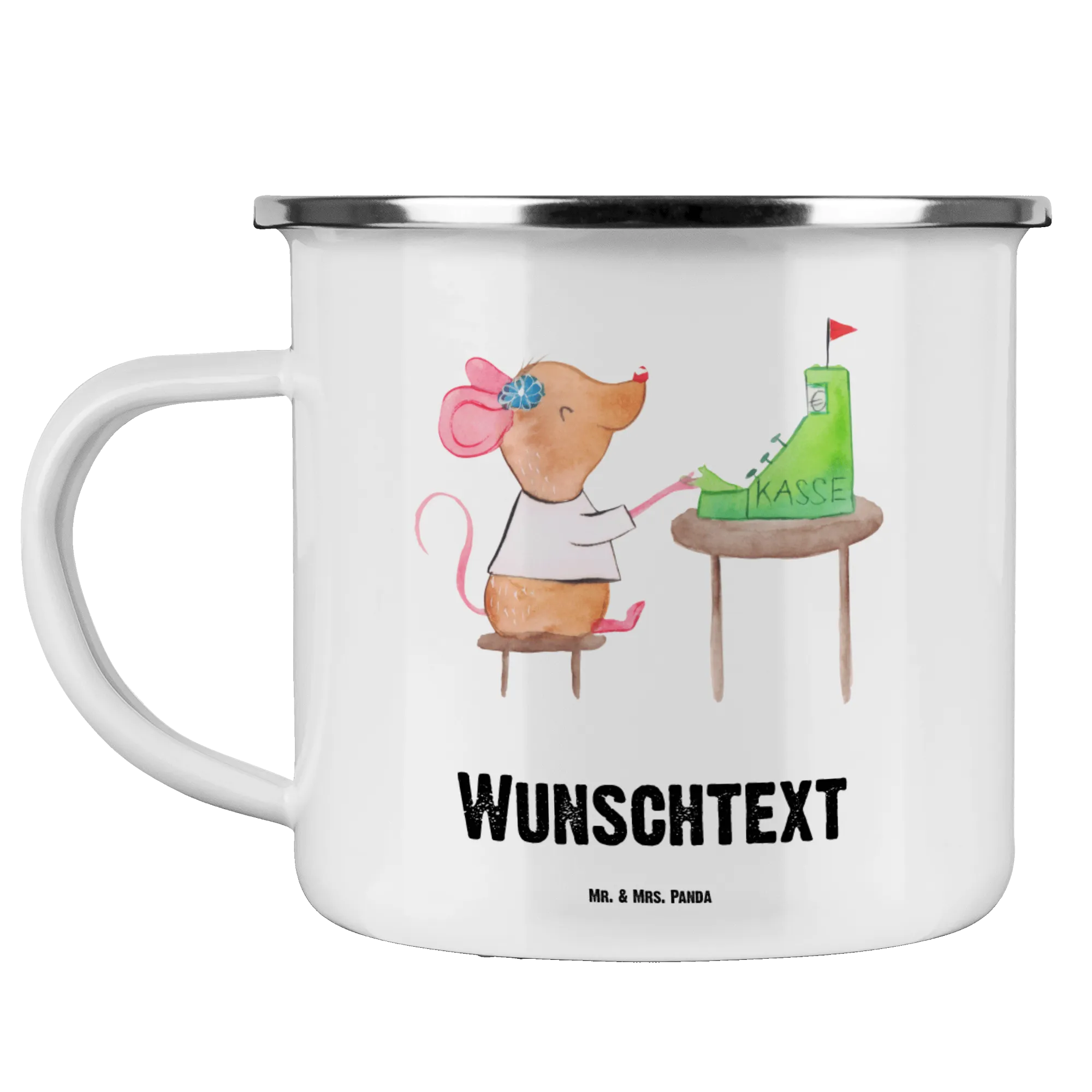 Hol dir die personalisierte Emaille Tasse Kassiererin mit Herz und mache den Alltag ein wenig heller!