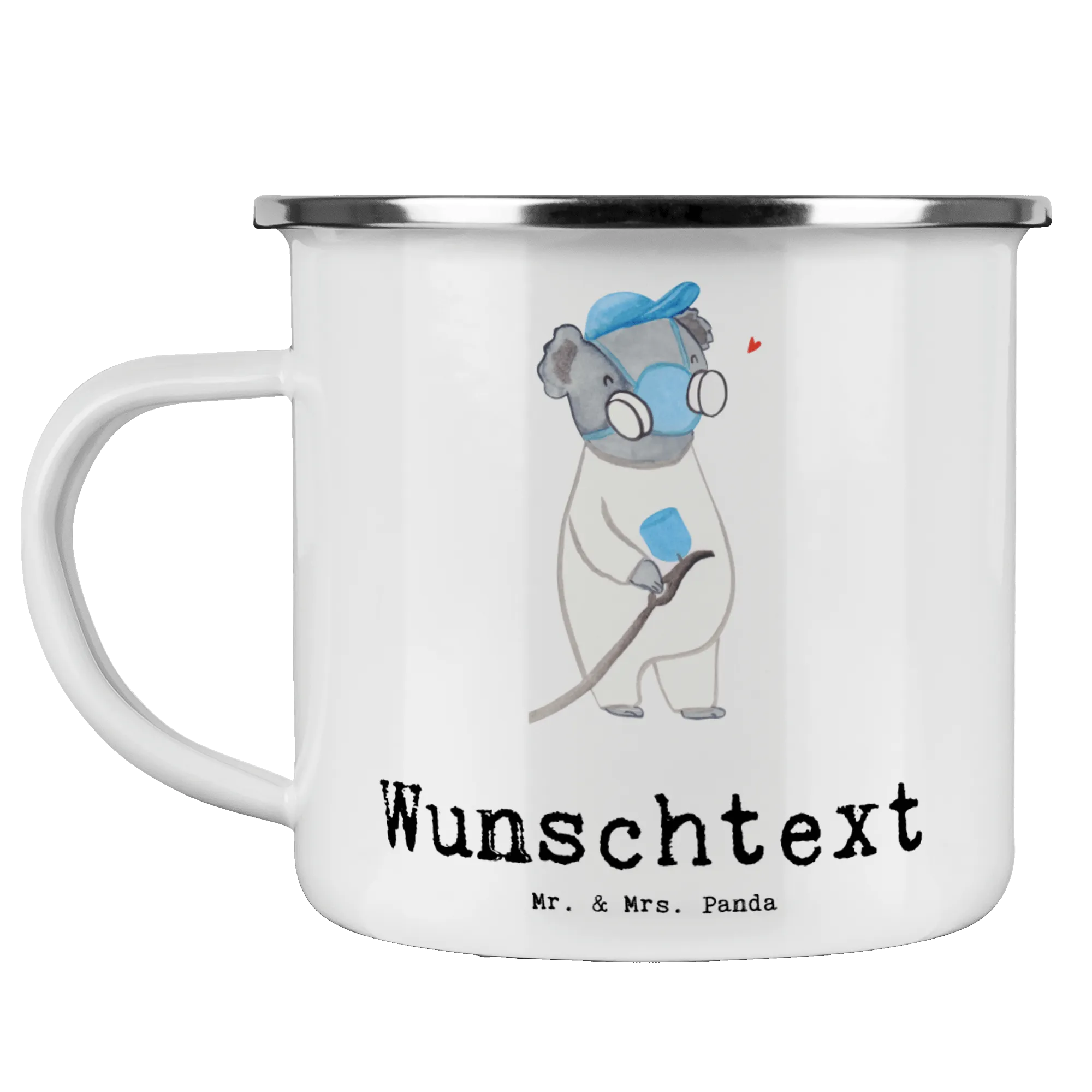 Sie ist das perfekte Geschenk zu verschiedensten Anlässen - ob zum Berufsabschluss, zur Rente oder einfach um ein kleines Dankeschön auszusprechen. Lass Euch inspirieren von der Magie der Berufe Kollektion und schenke Freude und Liebe mit der personalisierten Emaille Tasse "Lackierer mit Herz" von Mr. & Mrs. Panda!