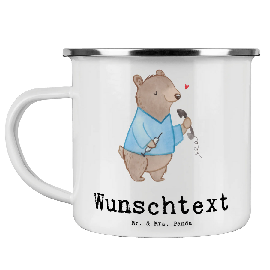 Die personalisierte Emaille Tasse 'Medizinische Fachangestellter mit Herz' von Mr. & Mrs. Panda ist das perfekte Geschenk für alle, die das medizinische Umfeld bereichern. Egal, ob du einem Arzthelfer, einem medizinischen Fachangestellten oder einer Sprechstundenhilfe eine Freude machen möchtest – diese Tasse ist die ideale Wahl!