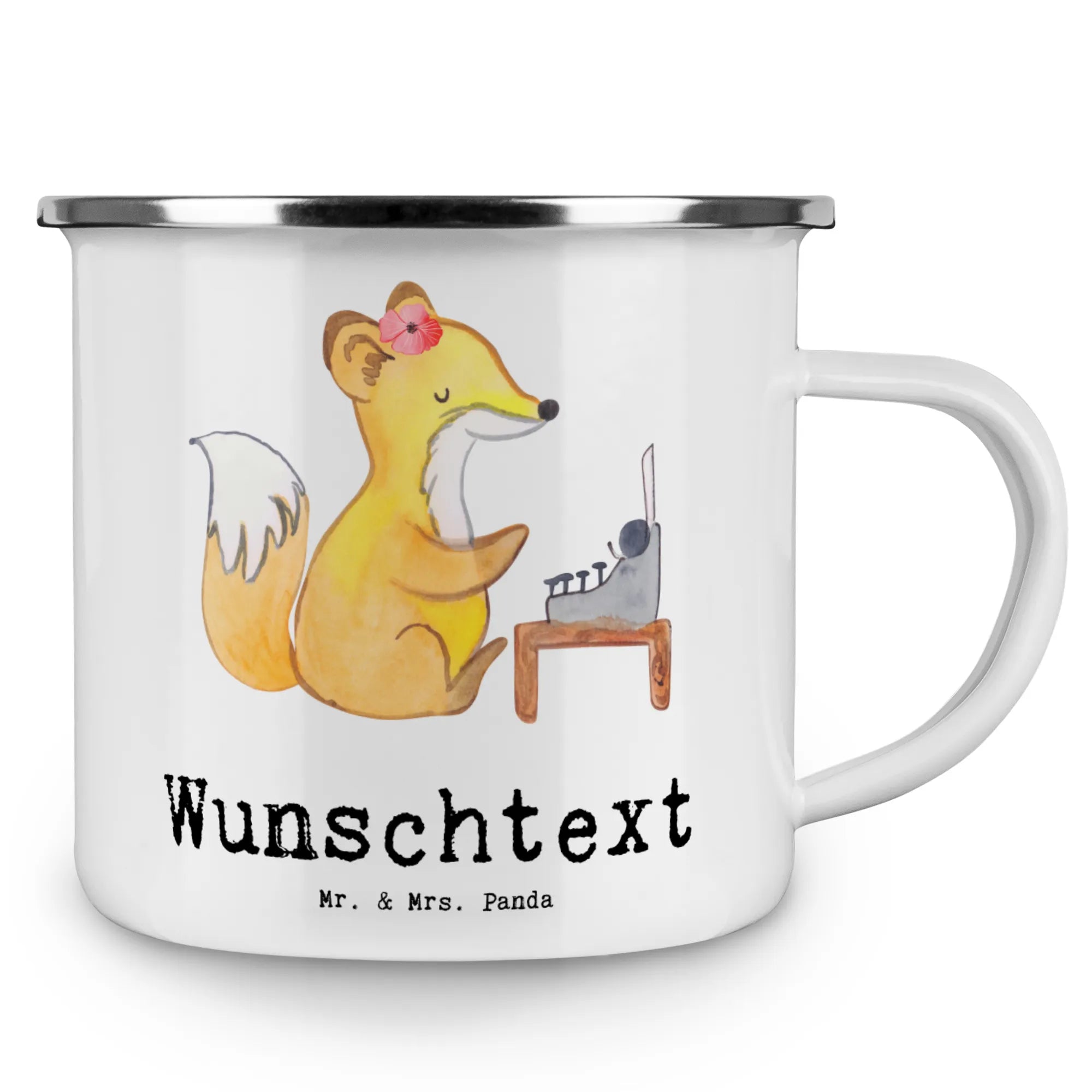 Personalisierte Emaille Tasse Schriftstellerin mit Herz – Mr. & Mrs. Panda