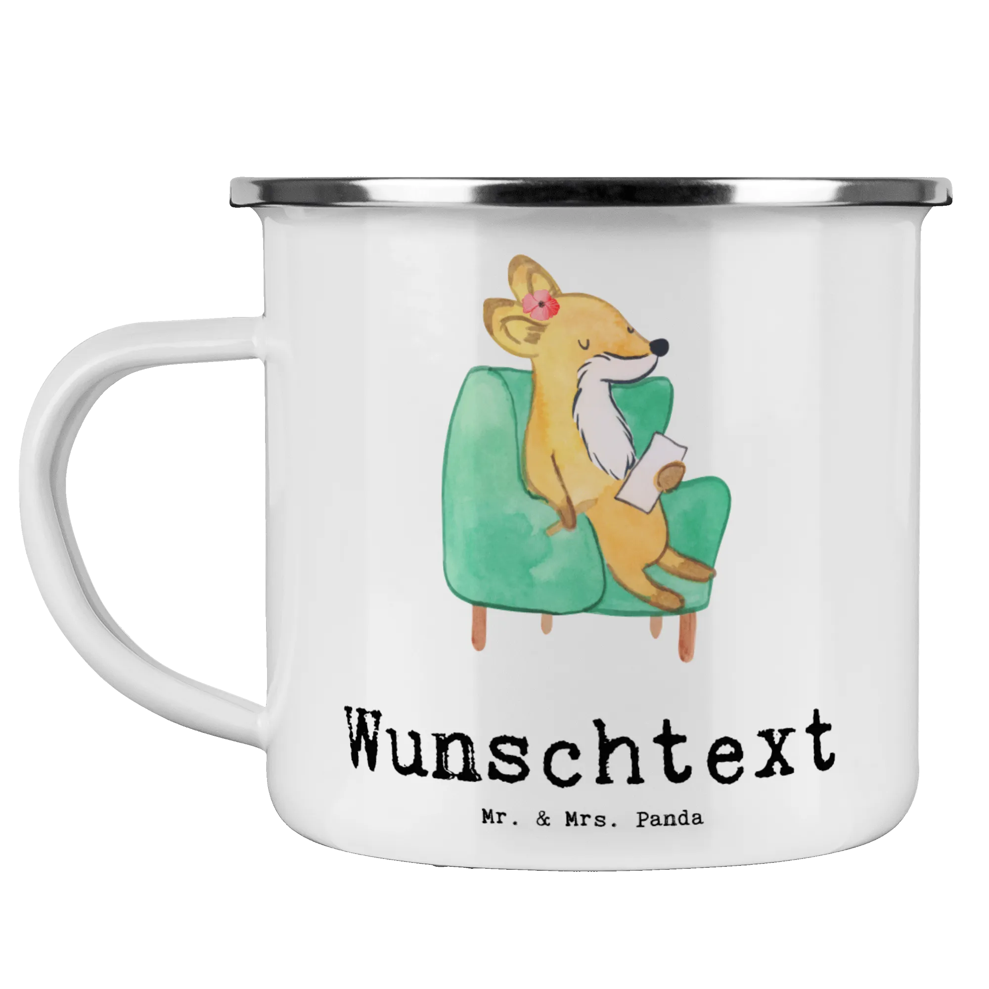 Die personalisierte Emaille Tasse mit dem süßen Motiv ‚Therapeutin mit Herz‘ von Mr. & Mrs. Panda ist das perfekte Geschenk für Therapeuten und Therapeutinnen! Ob zum Jobbeginn, zur Beförderung, zum Jubiläum oder einfach nur als kleine Aufmerksamkeit - diese Tasse ist eine wunderbare Geste, mit der Du Deine Wertschätzung zeigen kannst.
