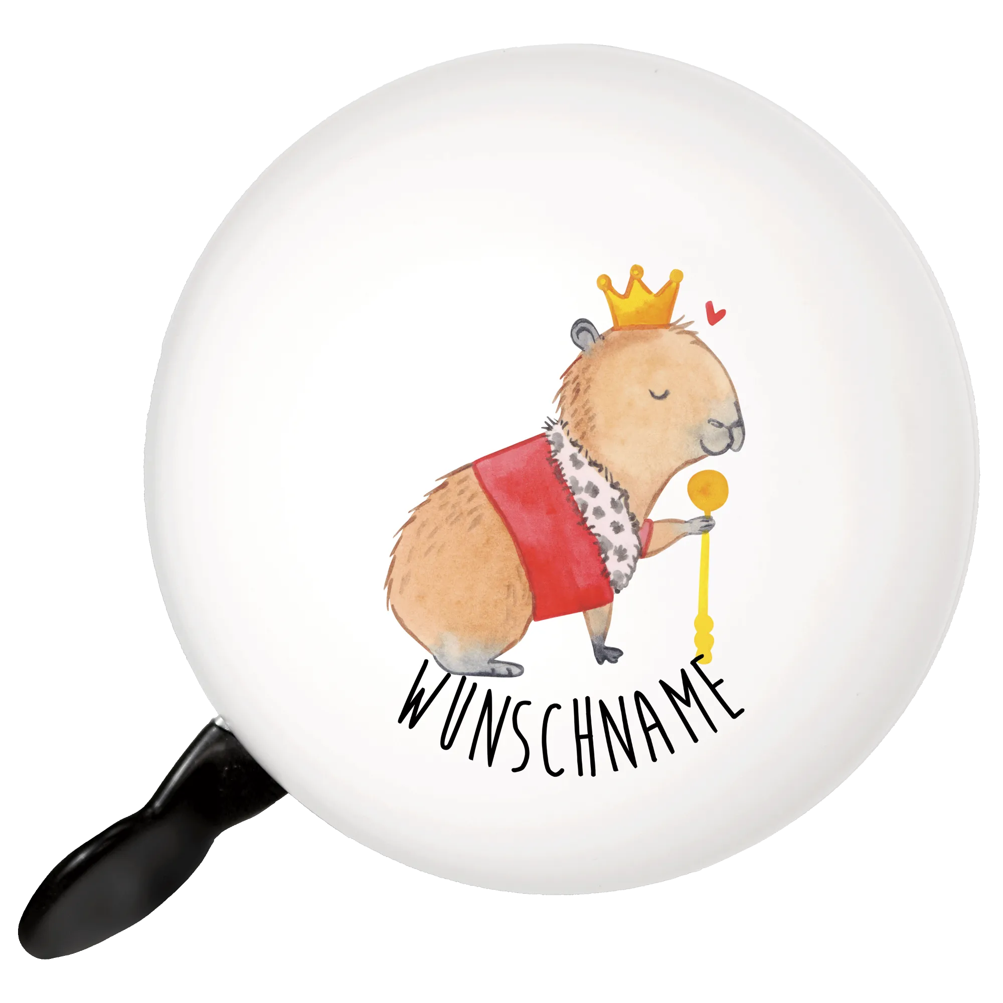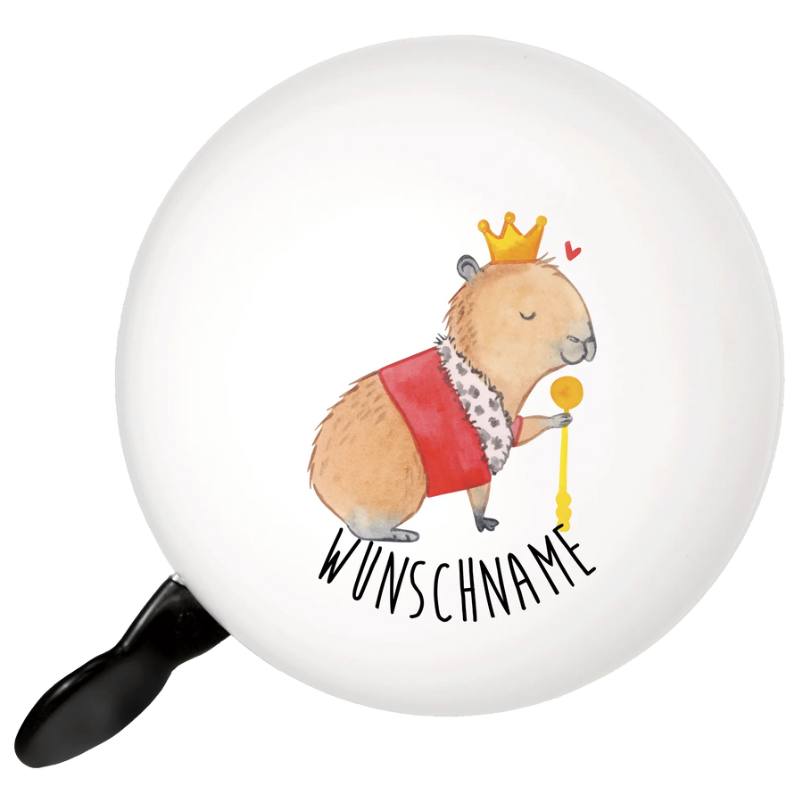 Das charmante Design zeigt ein niedliches Capybara, das mit einer goldenen Krone und einem Zepter ausgestattet ist und über sein kleines Königreich herrscht. Diese handgezeichnete Illustration von Mrs. Panda strahlt Wärme und Freundlichkeit aus, perfekt ergänzt durch das kleine Herzchen über dem Kopf des Capybaras. Der strahlende Druck sorgt für einen brillanten Glanz und der schöne Glockenklang wird beim Fahren jeden erfreuen.