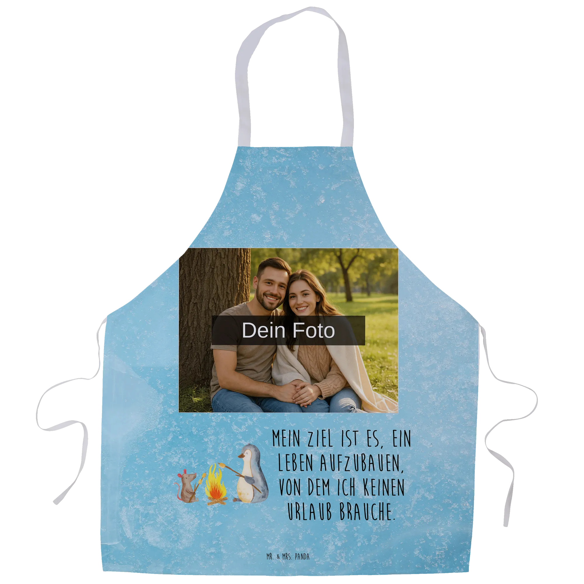 Personalisierte Foto Kochschürze Pinguin Lagerfeuer