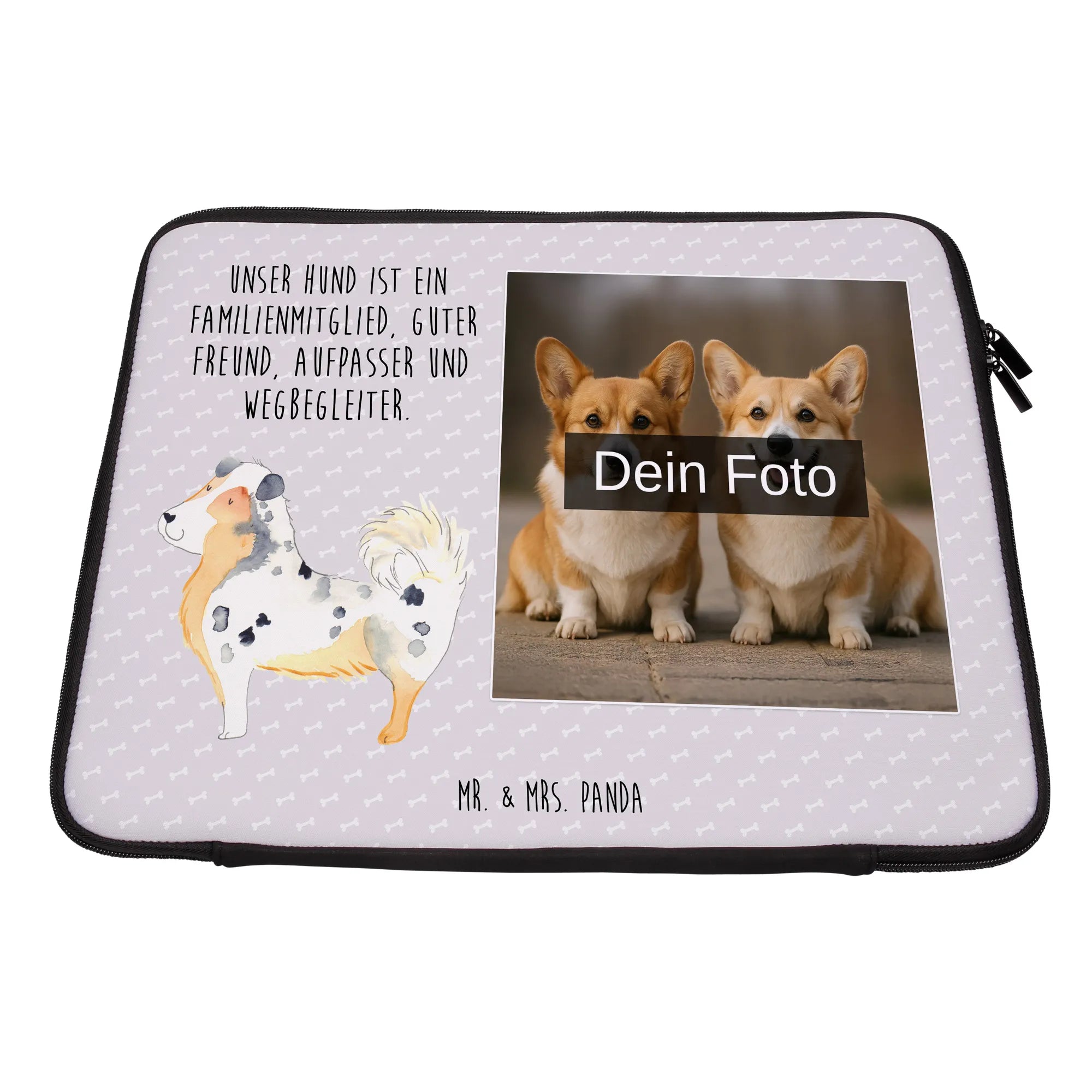 Personalisierte Foto Notebook Tasche Hund Australien Shepherd - 20 x 28 cm - Grau Pastell