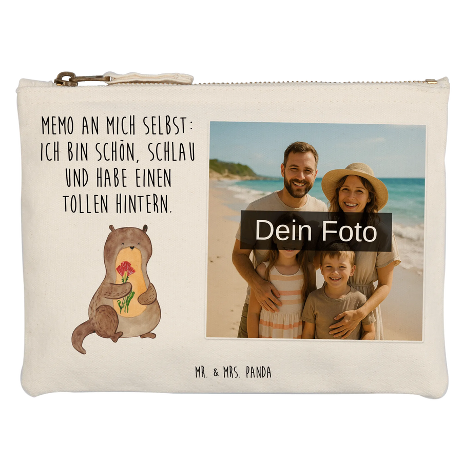 Personalisierte Foto Schminktasche Otter Blumenstrauß – Mr. & Mrs. Panda