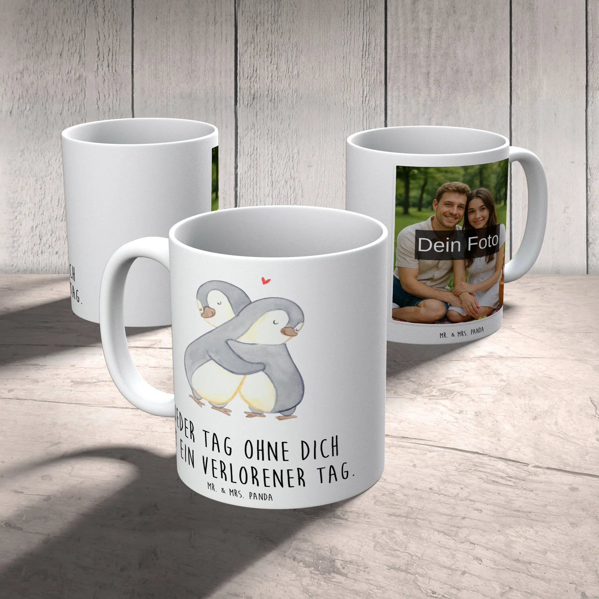 Die personalisierte Foto Tasse mit dem bezaubernden Motiv "Pinguine Kuscheln" von Mr. & Mrs. Panda ist das perfekte Geschenk für alle, die die Liebe feiern möchten. Egal ob Valentinstag, Hochzeitstag oder Jahrestag – diese Tasse wird dein Herz höher schlagen lassen!