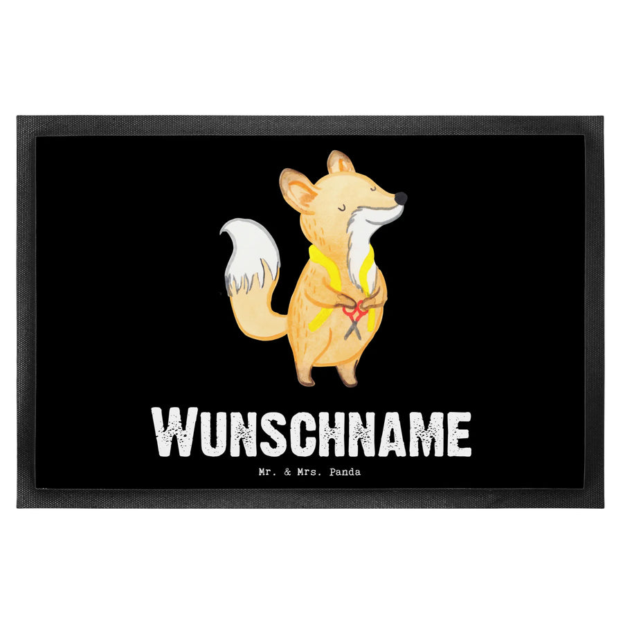 Die Fußmatte ist bedruckt mit einem liebevoll gestalteten Motiv eines stolzen kleinen Fuchses, der ein Maßband um den Hals trägt und eine Schere in der Hand hält. Diese charmante Darstellung bringt ein Lächeln auf die Lippen und verleiht jedem Eingangsbereich eine freundliche Note.