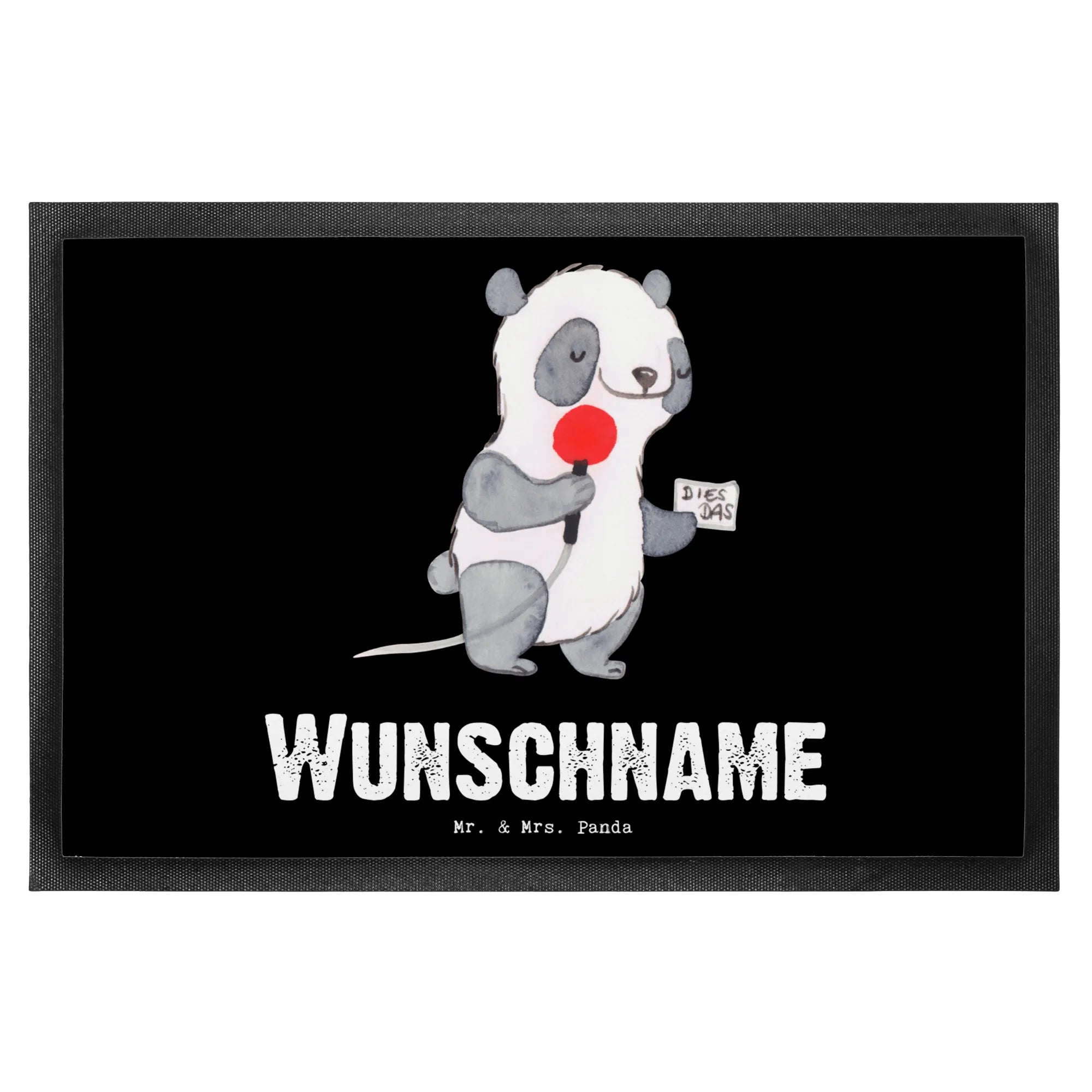 Das niedliche Motiv zeigt einen fröhlichen Panda mit einem Mikrofon in der Hand, der gerade einen Sportreporter interviewt. Wer könnte nicht schmunzeln, wenn er mit solch einer kreativen und einzigartigen Fußmatte begrüßt wird? Ob zum Jubiläum, beim Abschied oder einfach nur als Dankeschön – die personalisierte Fußmatte "Sportreporter mit Herz" vermittelt nicht nur Freude, sondern auch den besonderen Stolz, den Beruf des Sportreporters auszuüben.