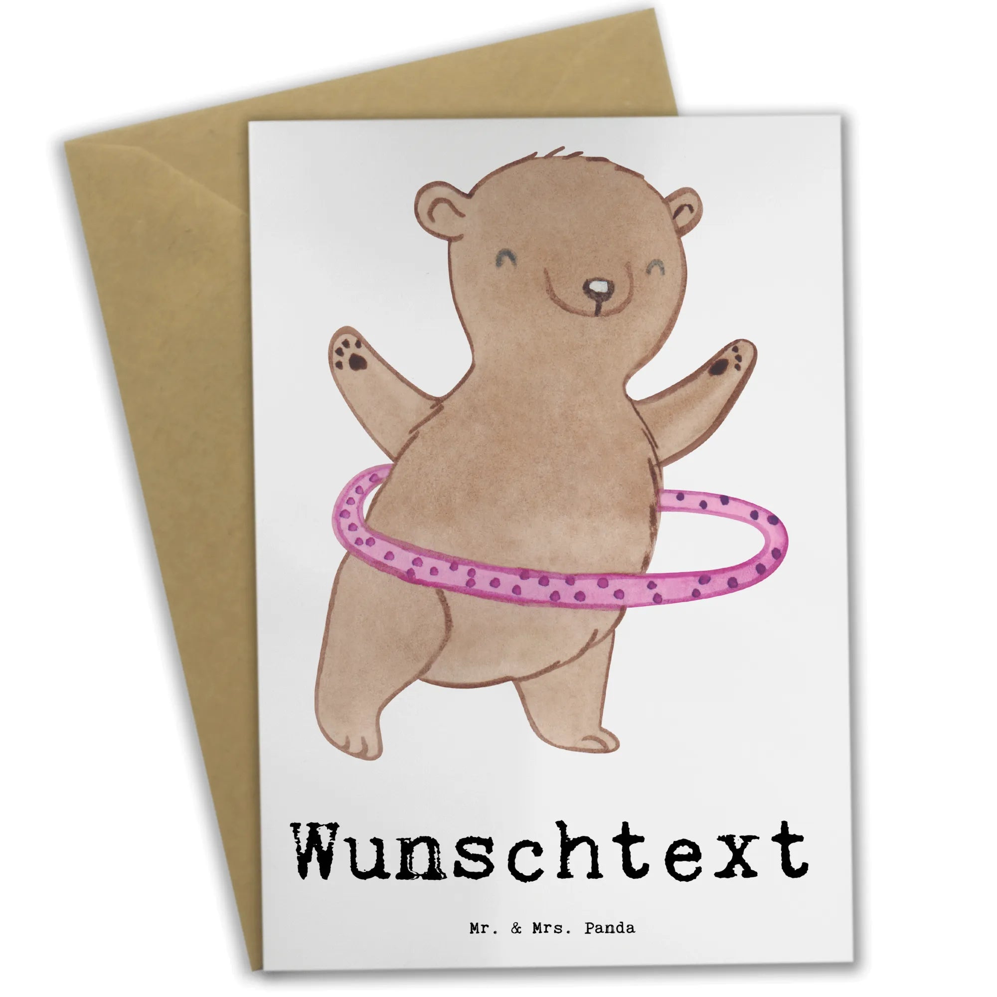 Die personalisierte Grußkarte mit dem niedlichen Bär Hula Hoop aus der Kollektion Hobby & Sport von Mr. & Mrs. Panda ist das perfekte Geschenk für alle, die das Hula Hoop lieben oder aktiv im Sport sind. Diese einzigartige Grußkarte wird aus hochwertigem 300 Gramm Karton gefertigt und ist ideal für eine Vielzahl von Anlässen. Ob zum Geburtstag, als Einladung zu einer Sportveranstaltung oder einfach nur als kleine Aufmerksamkeit – diese Karte verbreitet Freude und sorgt für ein Lächeln.