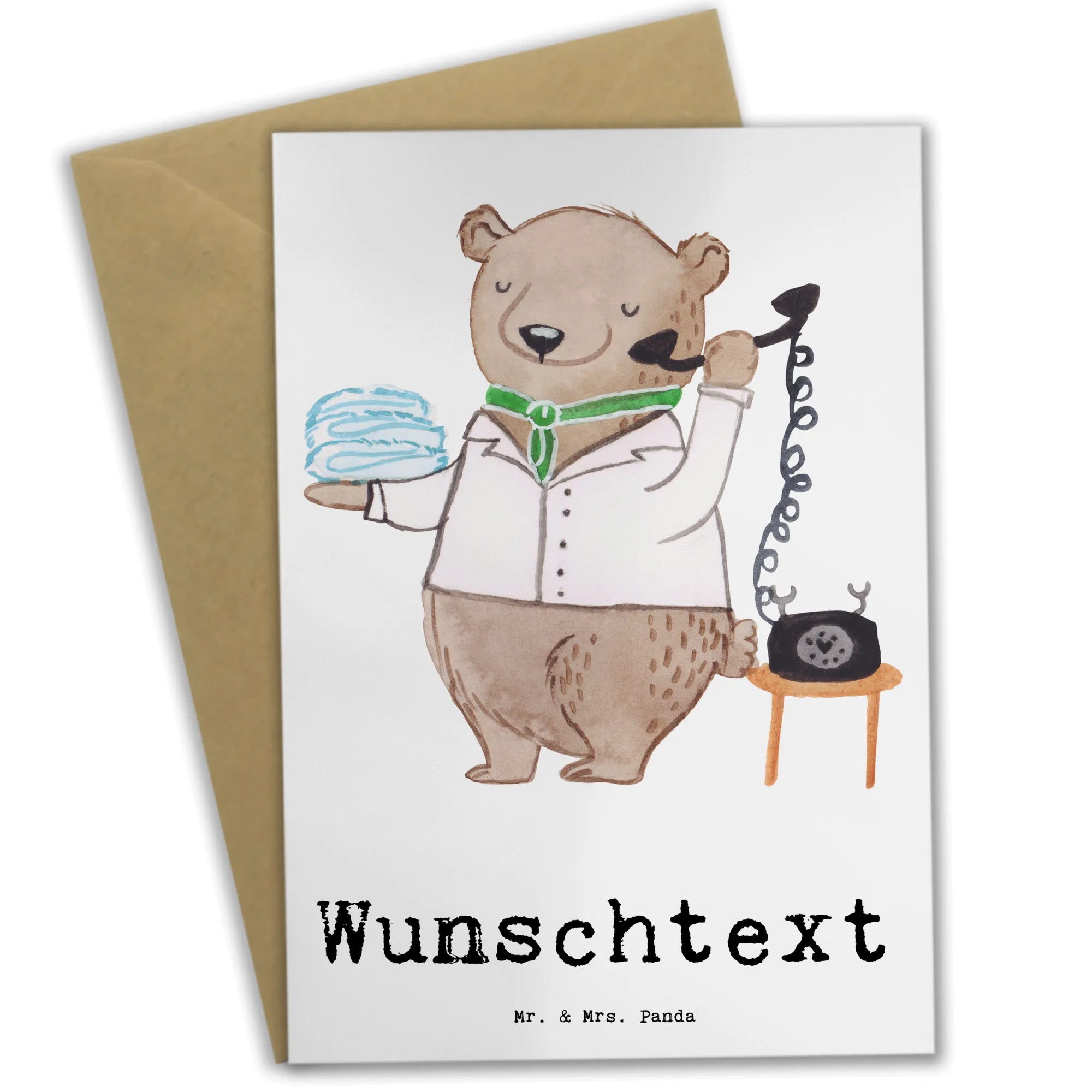 Entdecke die perfekte personalisierte Grußkarte 'Hotelfachfrau mit Herz' aus der zauberhaften Berufe Kollektion von Mr. & Mrs. Panda. Diese einzigartige Grußkarte wird nicht nur die Herzen aller Hotelfachangestellten höherschlagen lassen, sondern ist auch ein einfühlsames Geschenk für verschiedene Anlässe.