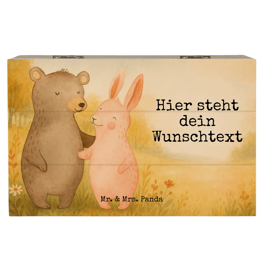 personalisierte holzkiste Bär und Hase Umarmen Design - 19 x 12 cm