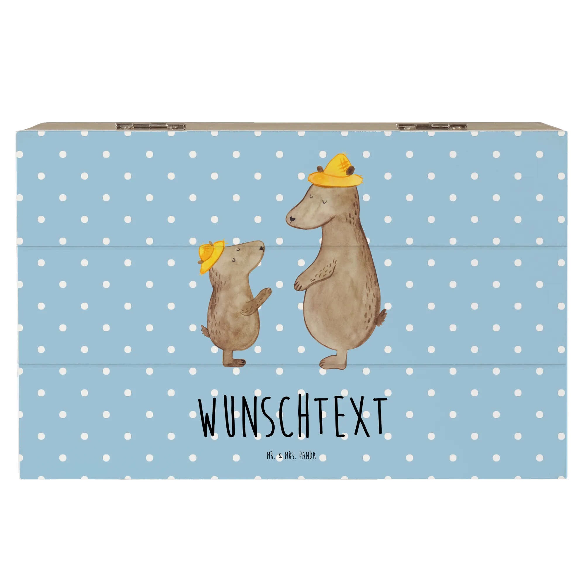 Die personalisierte Holzkiste mit dem bezaubernden Motif der "Bären mit Hut" von Mr. & Mrs. Panda ist das perfekte Geschenk für jeden Anlass, besonders für den Vatertag oder als liebevolle Erinnerung für Familienmitglieder. Diese Kiste ist nicht einfach nur eine Aufbewahrungsbox; sie ist ein Ort, an dem persönliche Schätze, Erinnerungen und Glücksmomente für immer festgehalten werden können.