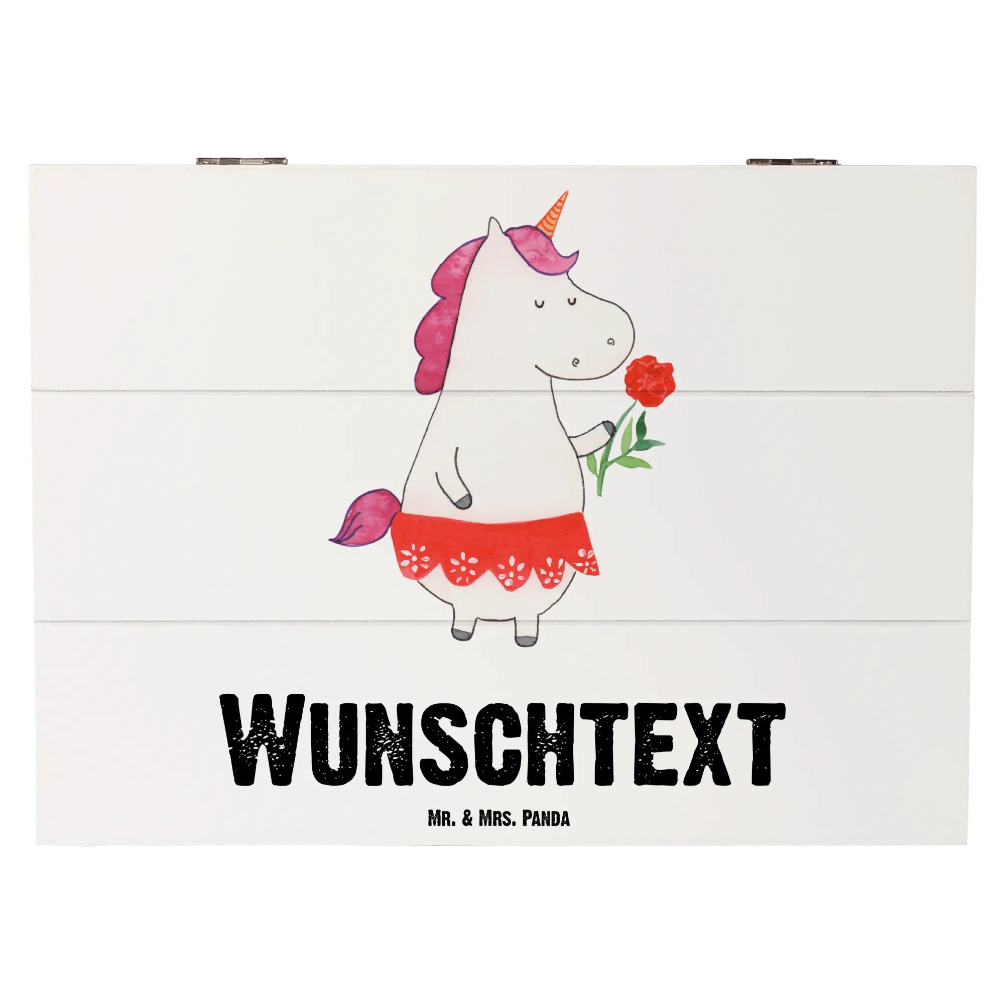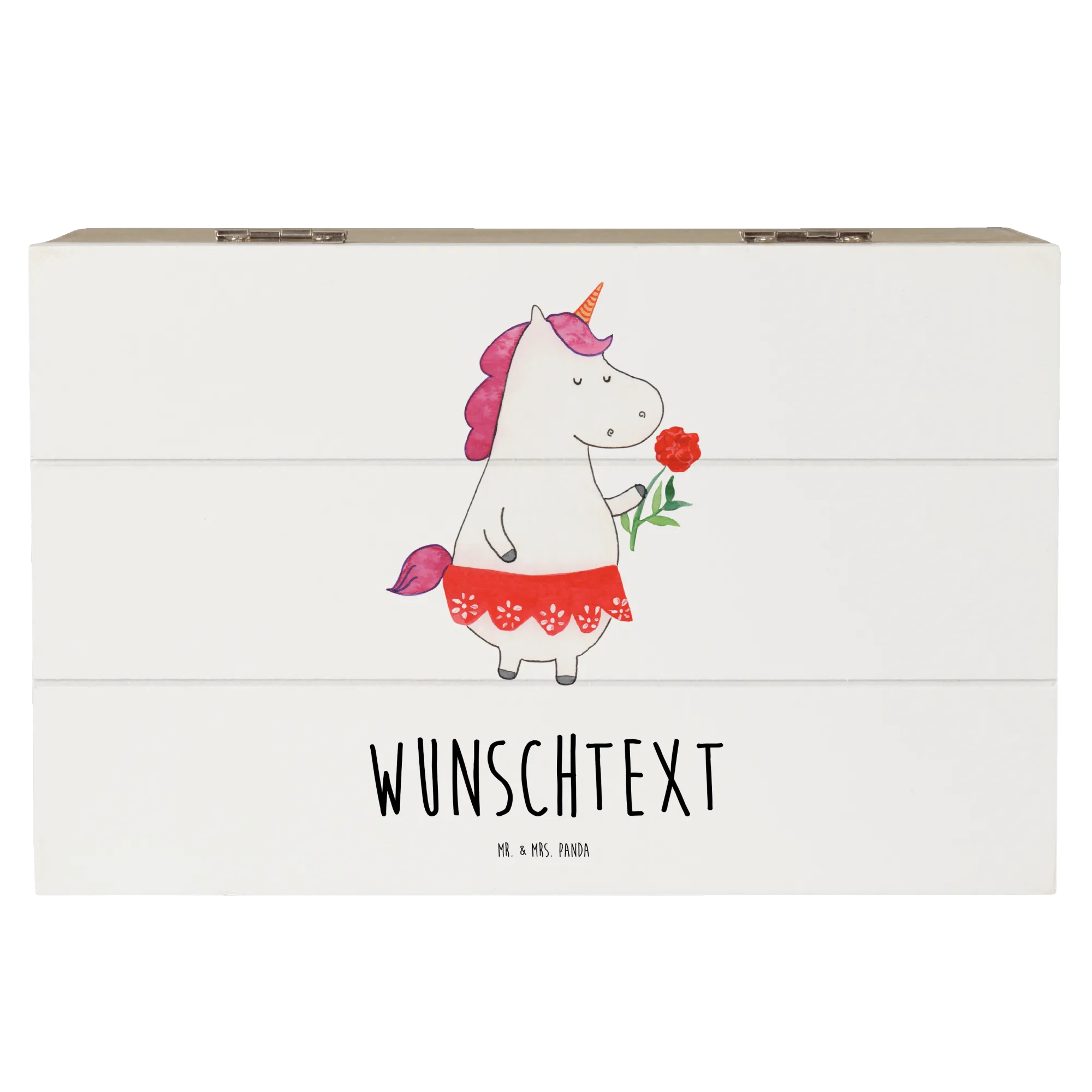 Entdecke die zauberhafte, personalisierte Holzkiste mit dem süßen Einhorn-Motiv "Einhorn Dame" von Mr. & Mrs. Panda! Diese liebevoll gestaltete Kiste ist nicht nur ein praktischer Aufbewahrungsort, sondern auch ein wunderschönes, persönliches Geschenk für viele Anlässe.