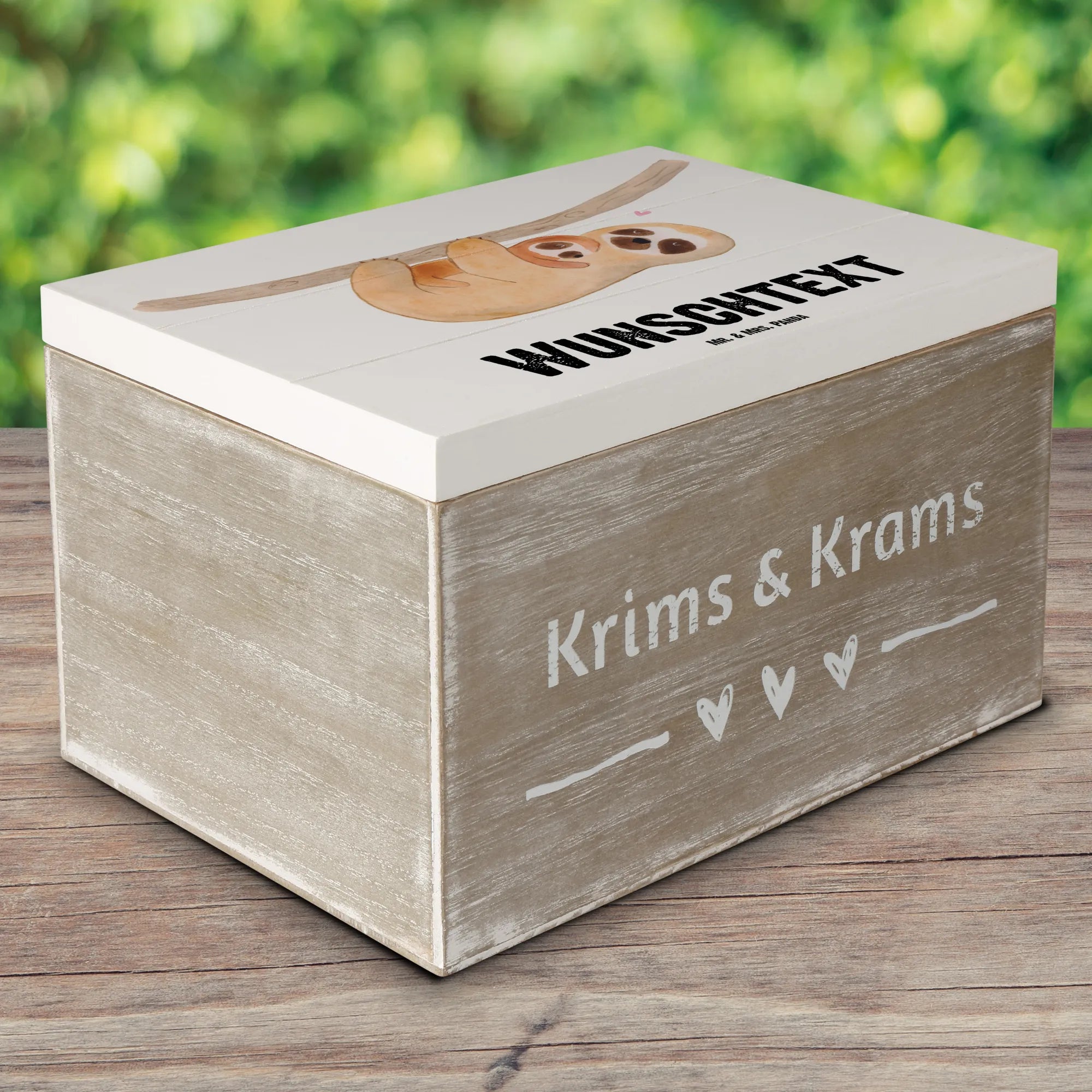 Verschenke Freude mit dieser einzigartigen, personalisierbaren Holzkiste und mache jeden Anlass zu etwas Außergewöhnlichem. Die Faultier-Kollektion von Mr. & Mrs. Panda bietet zahlreiche Produkte mit diesen niedlichen, handgezeichneten Motiven, die zu einem echten Blickfang werden.