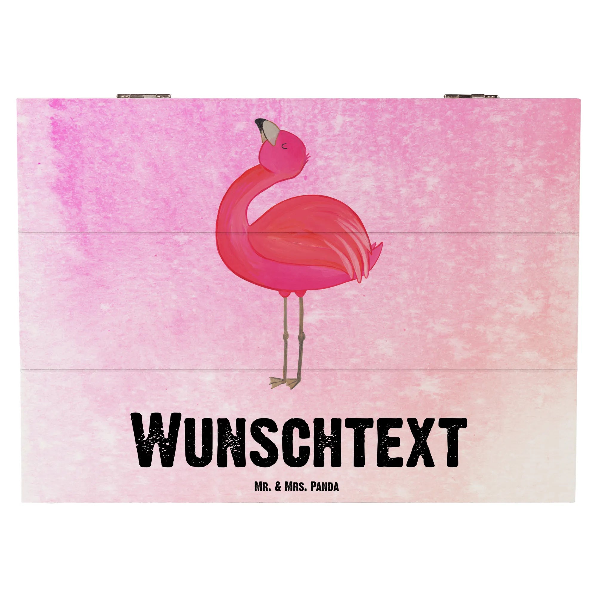 Entdecke die zauberhafte personalisierte Holzkiste mit dem stolzen Flamingo Motiv aus der Flamingo-Kollektion von Mr. & Mrs. Panda!