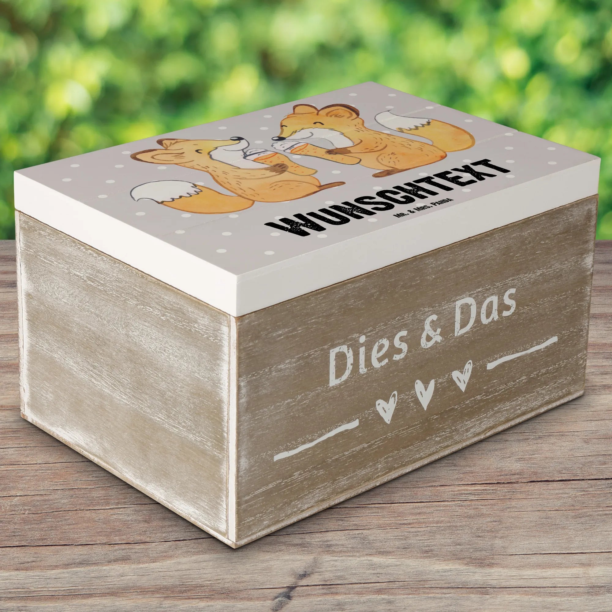 Die personalisierte Holzkiste mit dem liebevollen Motiv "Fuchs Bester Halbbruder der Welt" von Mr. & Mrs. Panda ist der perfekte Begleiter für all deine kleinen Schätze!