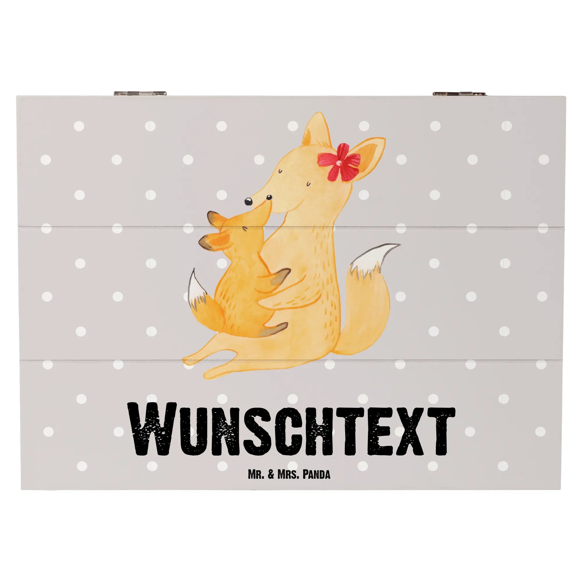 Die personalisierte Holzkiste mit dem liebevollen Motiv „Fuchs Mama & Kind“ von Mr. & Mrs. Panda ist das ideale Geschenk für alle, die die Familie über alles lieben. Egal ob zu Muttertag, für die Lieblingstochter oder einfach als süße Überraschung – diese Kiste ist perfekt, um wertvolle Erinnerungen zu bewahren.