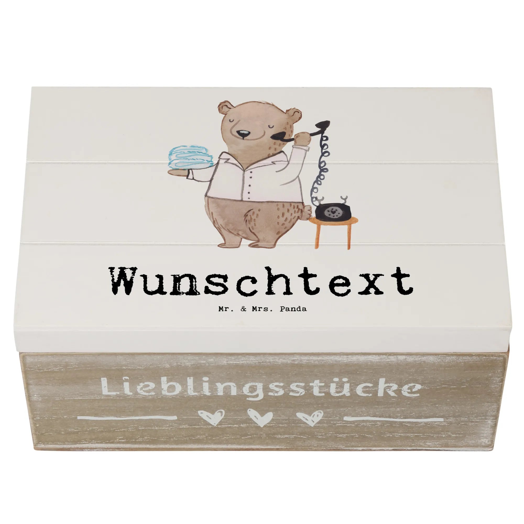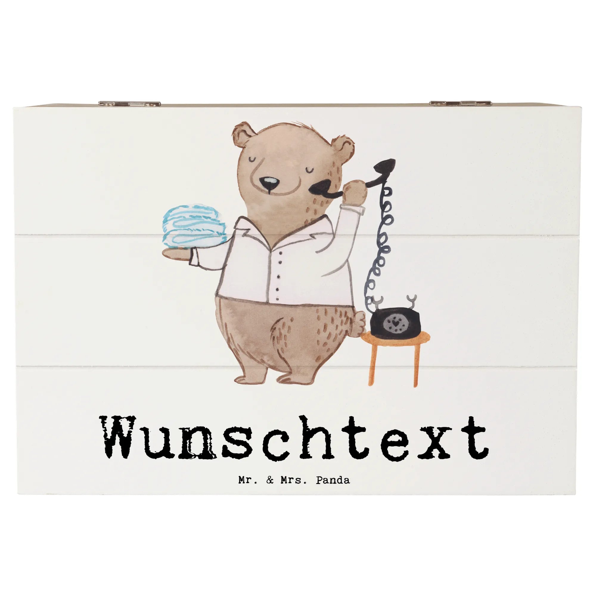 Die personalisierte Holzkiste mit dem Motiv 'Hotelfachmann mit Herz' von Mr. & Mrs. Panda ist das perfekte Geschenk für alle Hotelfachangestellten und Hotelkaufleute. Diese wunderschöne Kiste ist nicht nur ein echter Blickfang, sondern auch eine ganz besondere Aufbewahrungsmöglichkeit für all jene Erinnerungen, die du für immer festhalten möchtest. Egal, ob als Erinnerungskiste für besondere Anlässe wie Kommunion, Konfirmation oder einfach nur als kreative Dekokiste, diese Holzkiste bringt ein Lächeln ins Gesicht!
