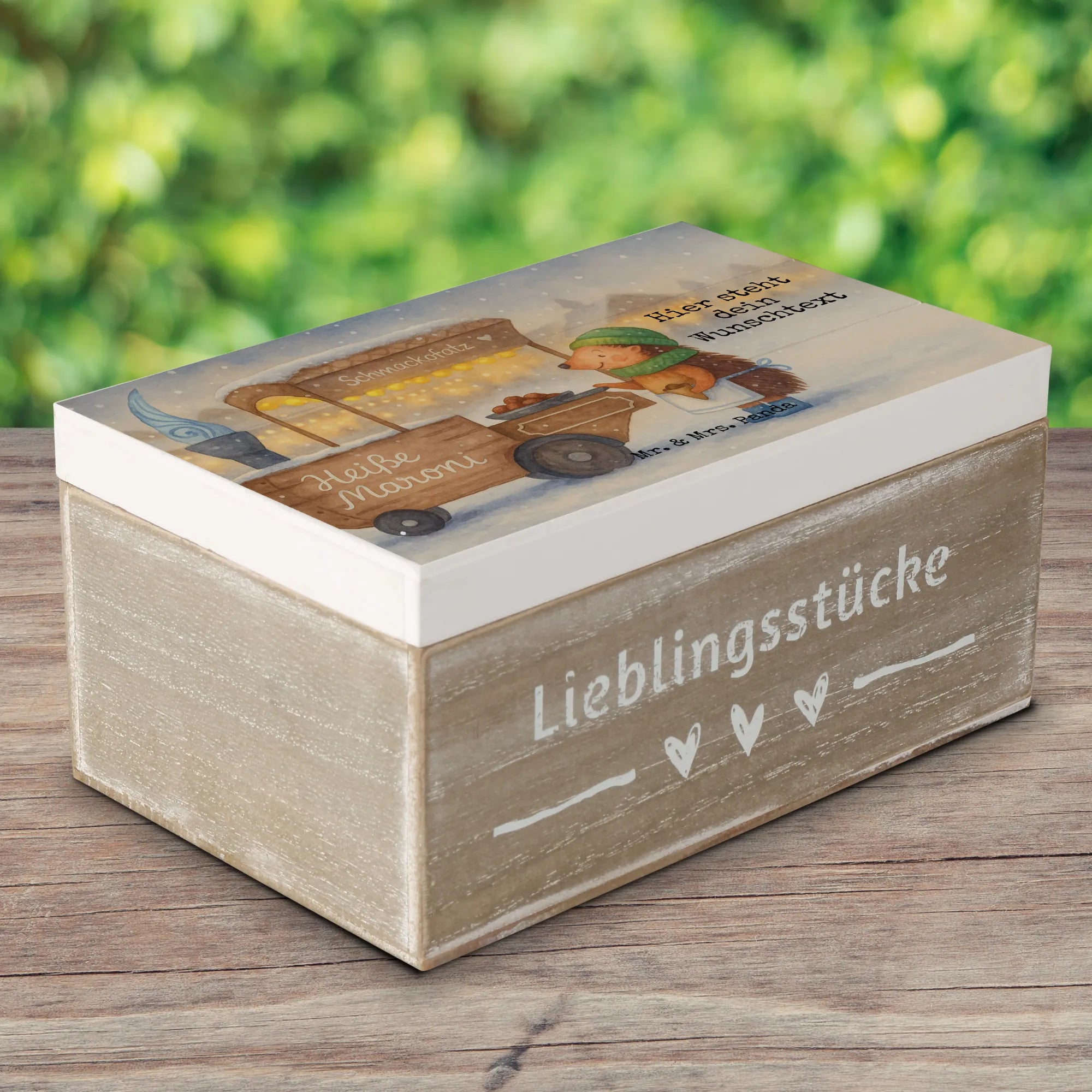 Personalisierte Holzkiste Igel Maronen Design - 22 x 15 cm