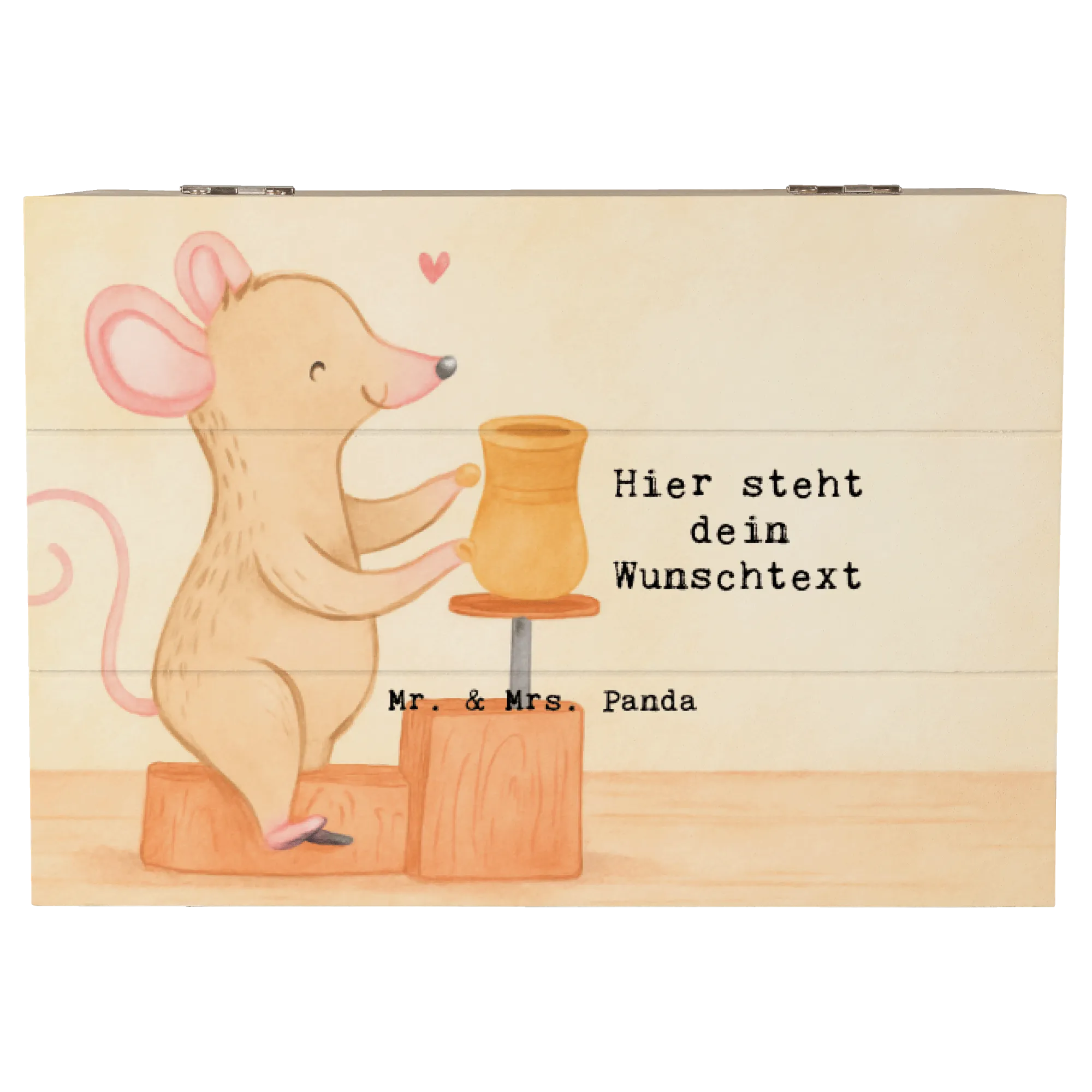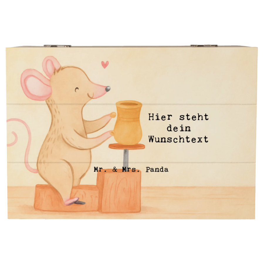 Personalisierte Holzkiste Maus Töpfern Design - 22 x 15 cm
