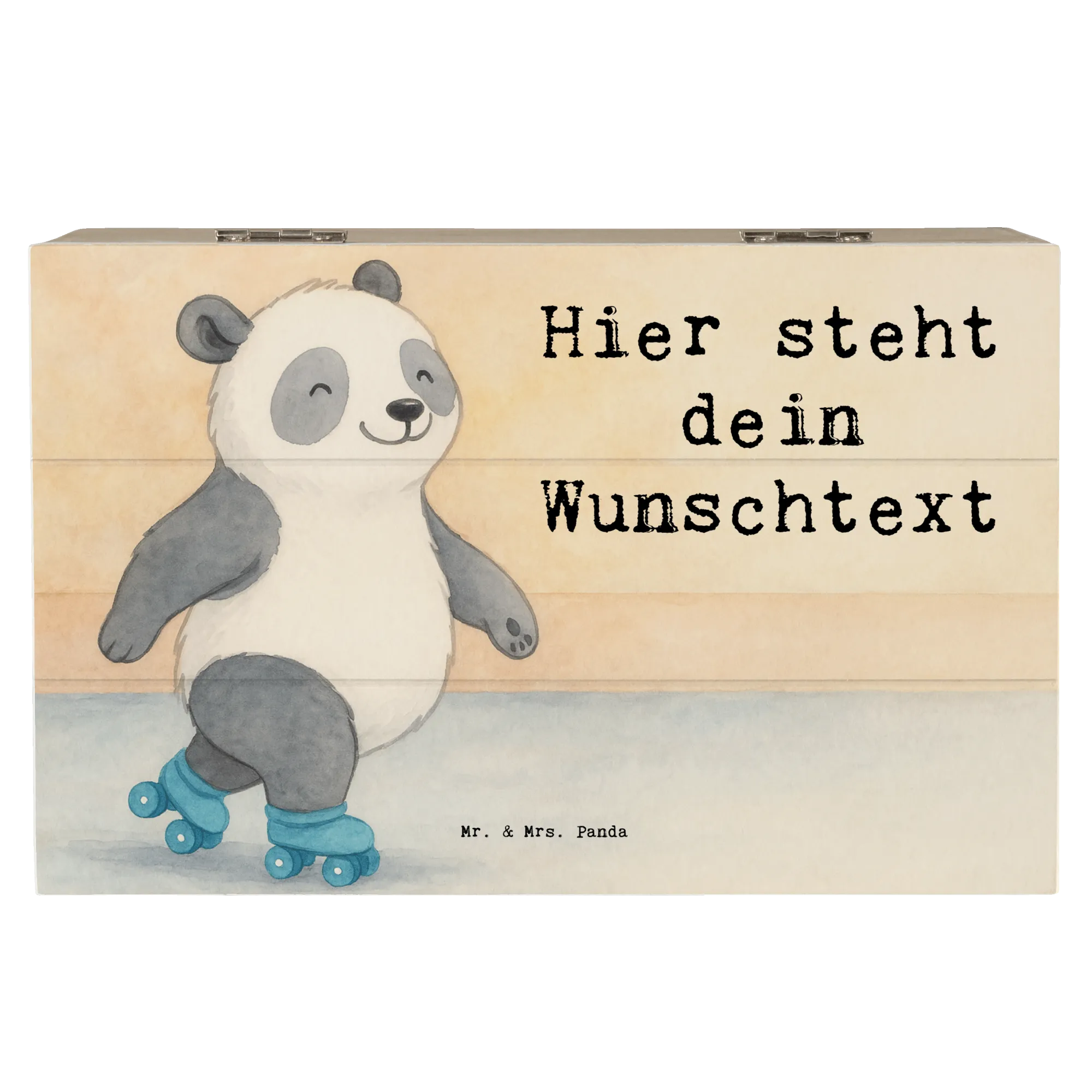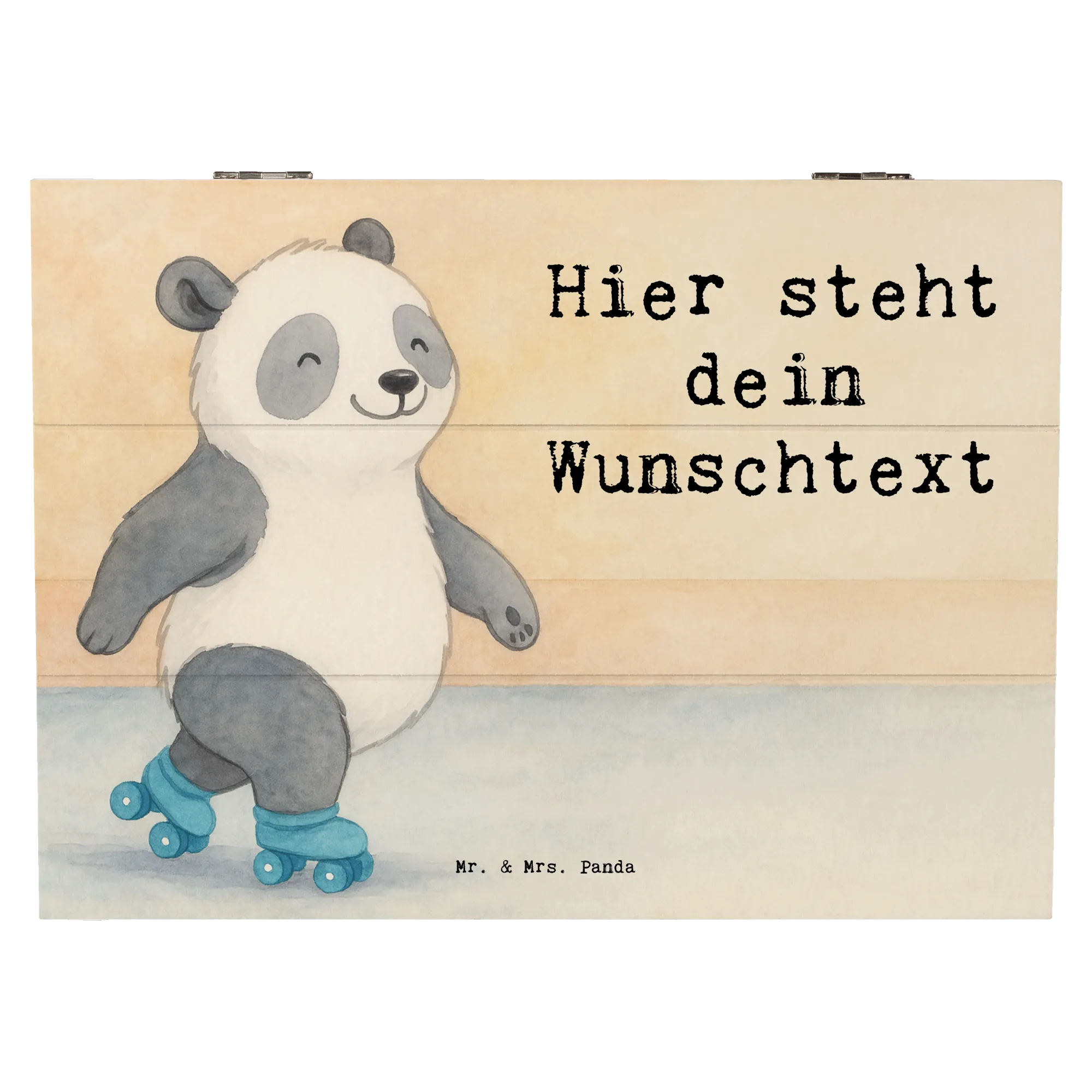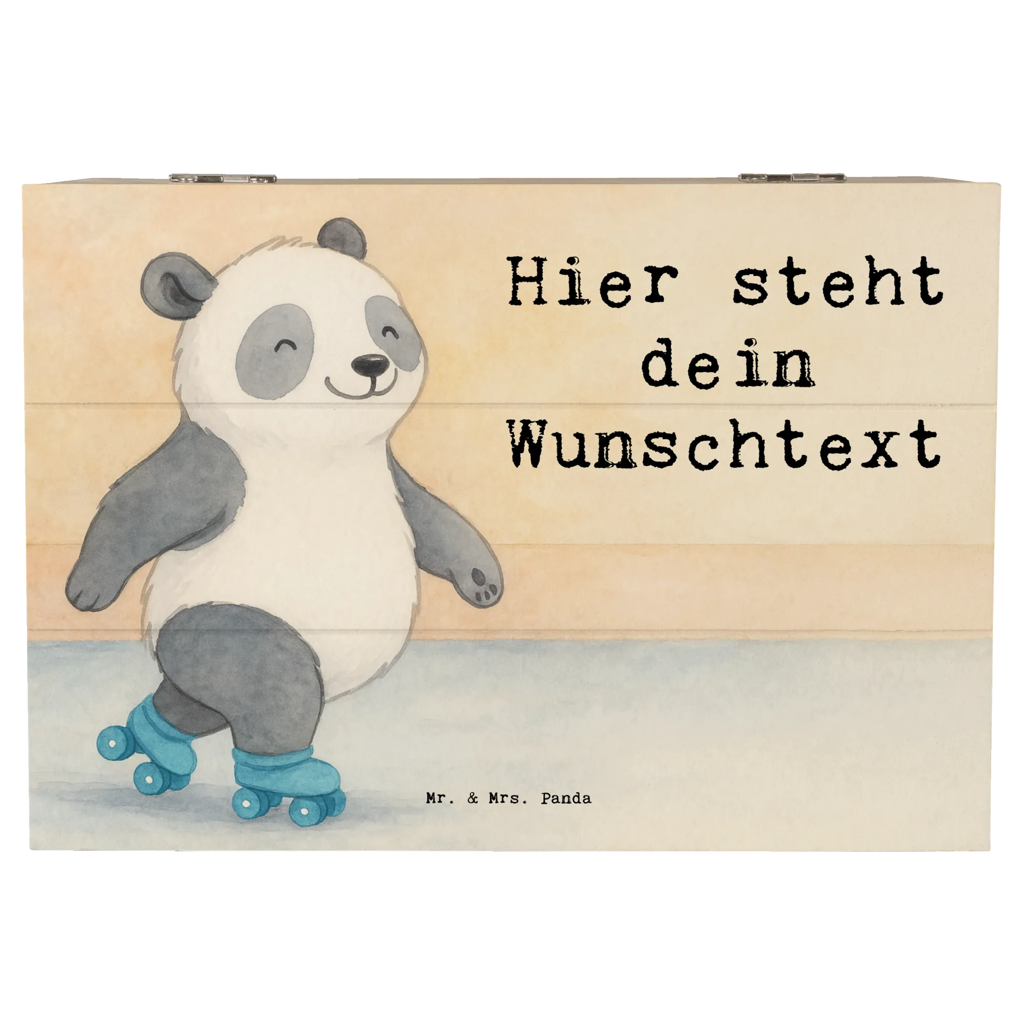 Personalisierte Holzkiste Panda Inliner fahren Design - 22 x 15 cm
