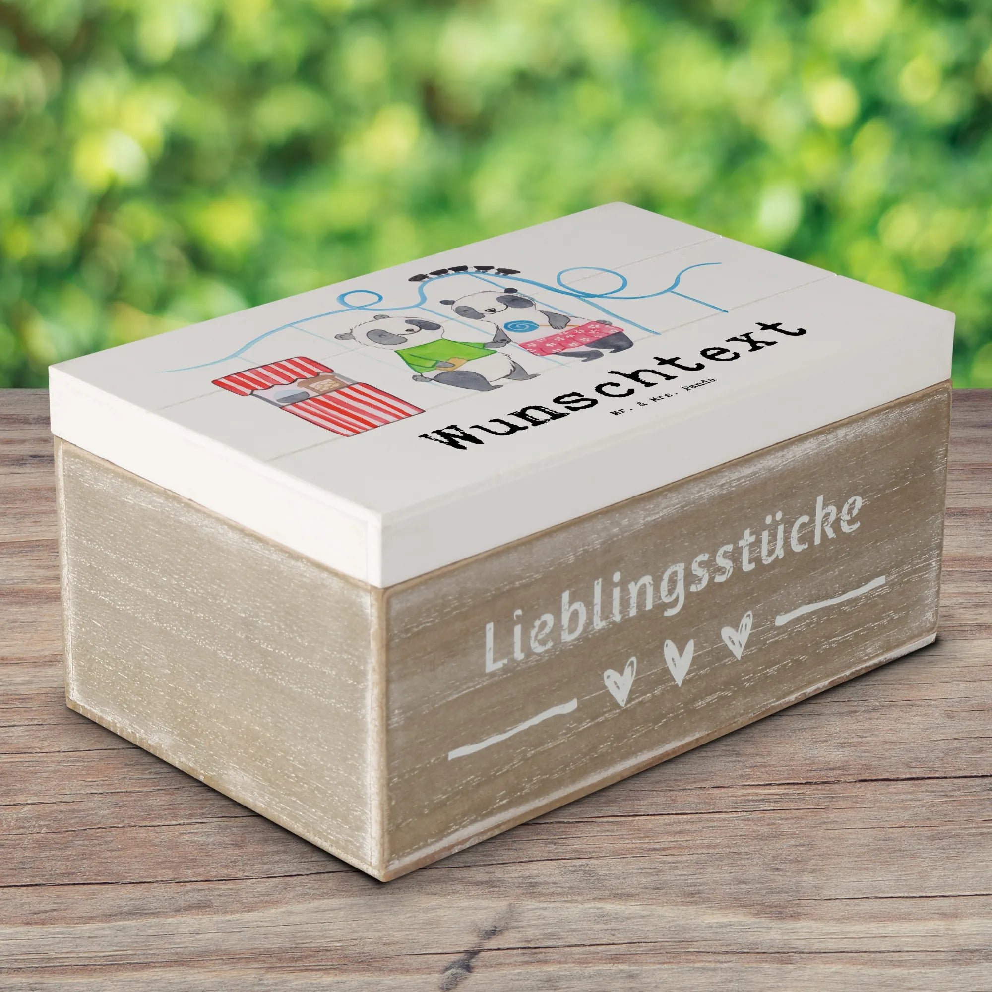 Stell dir vor, du hältst ein Stück pures Glück in den Händen. Unsere personalisierte Holzkiste von Mr. & Mrs. Panda mit dem entzückenden Motiv 'Pandas Freizeitpark besuchen Tage' ist genau das – ein Tresor für deine allerschönsten Momente. 🐼🎢