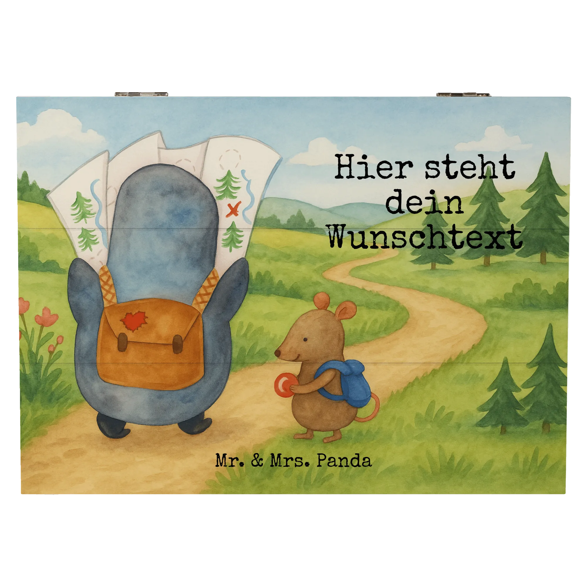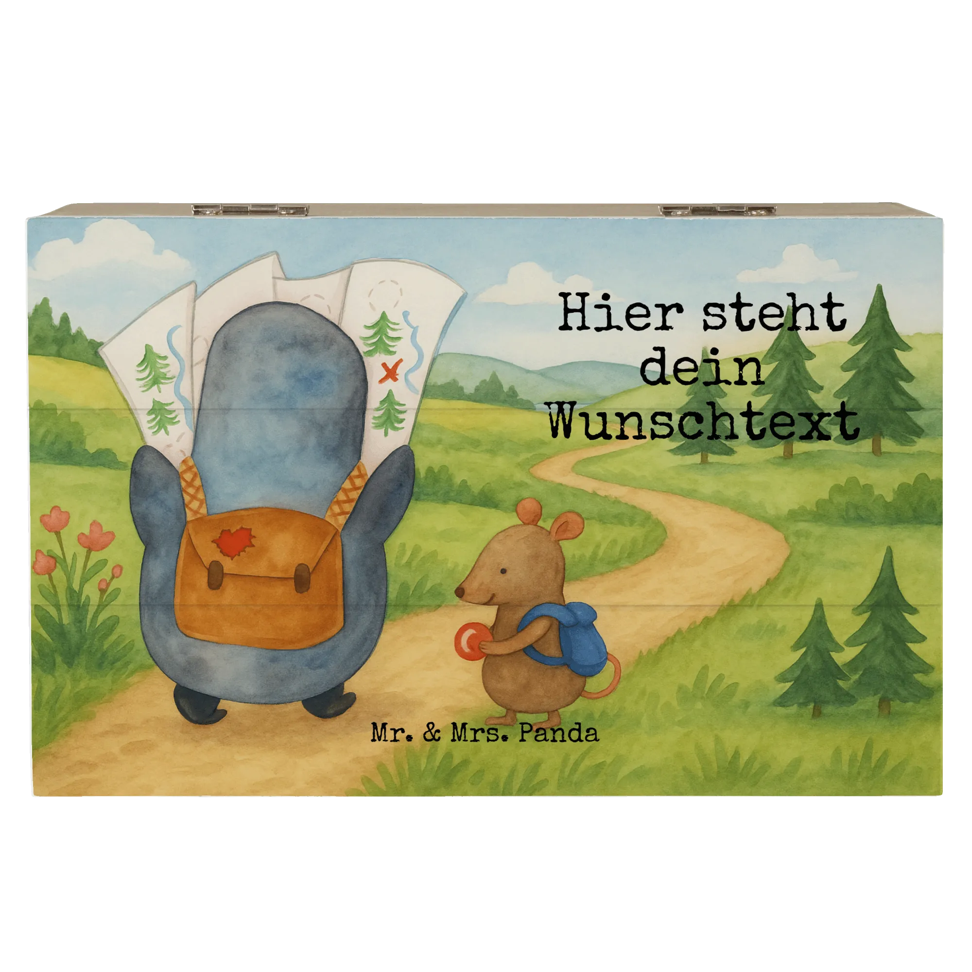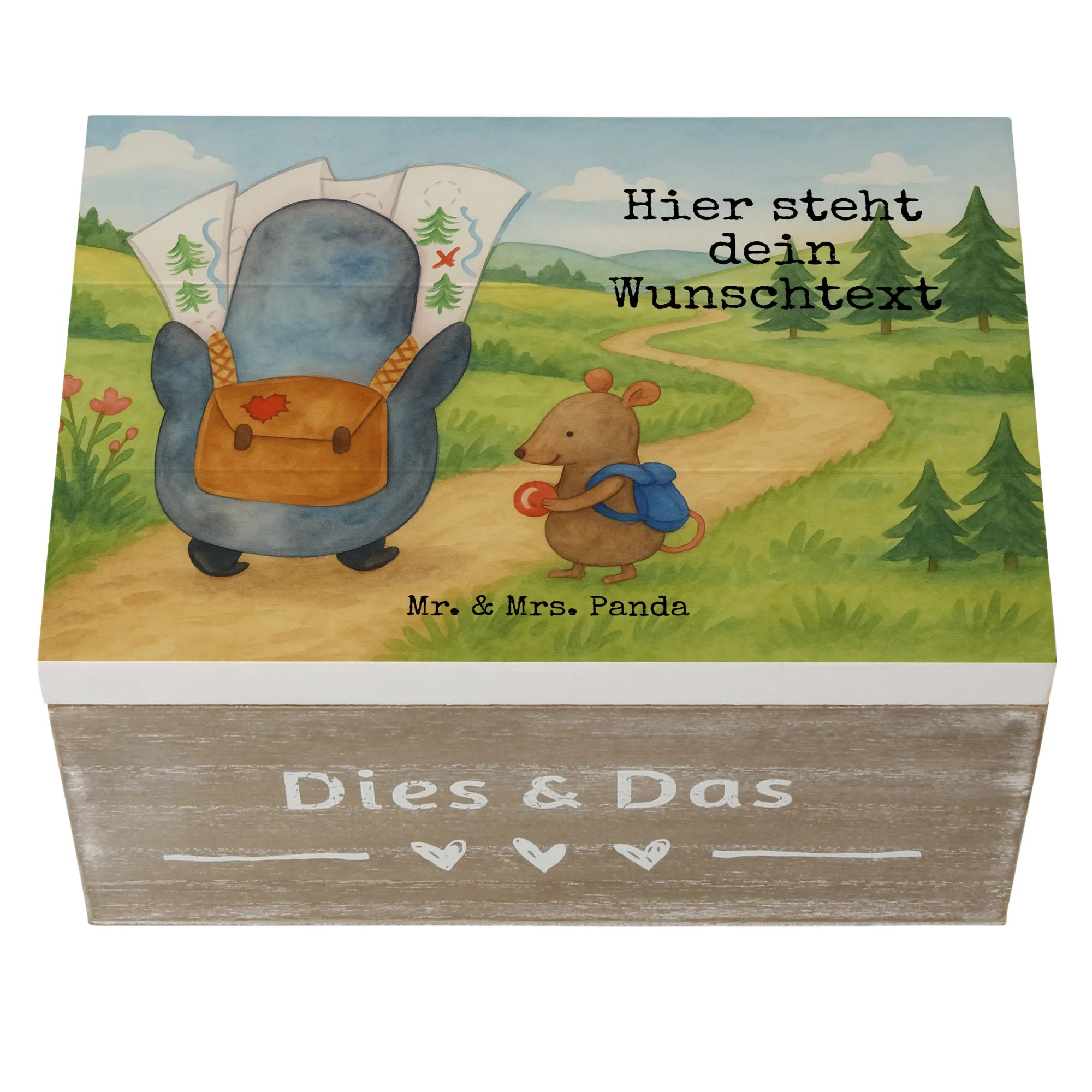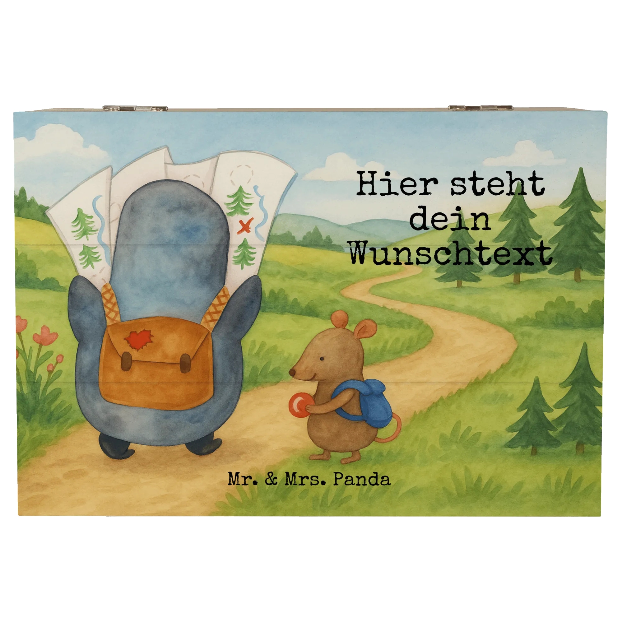 Personalisierte Holzkiste Pinguin & Maus Wanderer Design - 22 x 15 cm