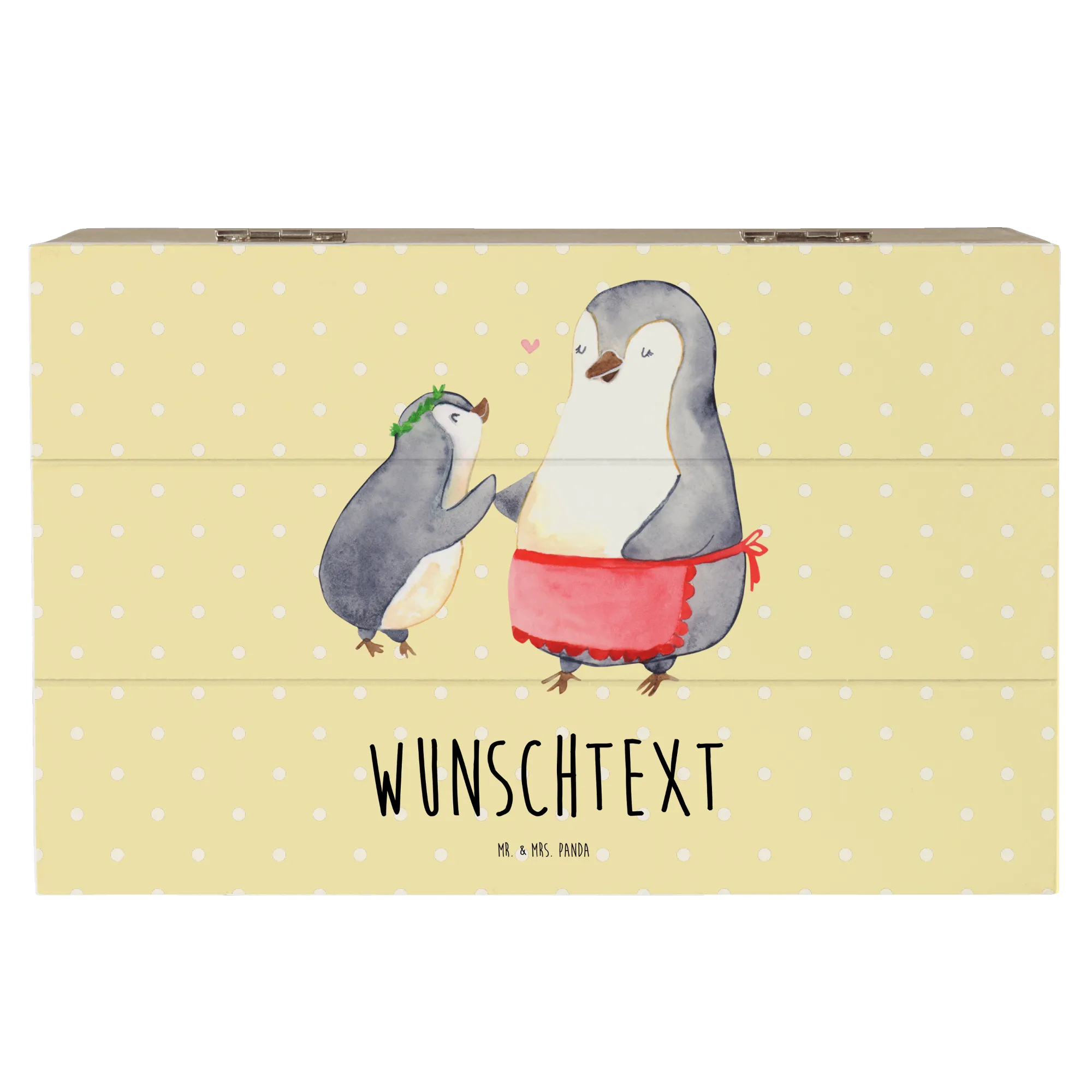 Du suchst das perfekte Geschenk für eine ganz besondere Mama? Dann ist die personalisierte Holzkiste mit dem schönen Motiv "Pinguin mit Kind" von Mr. & Mrs. Panda genau das Richtige! Diese wundervolle Kiste bietet den idealen Aufbewahrungsort für all ihre Schätze und Erinnerungen und lässt sich perfekt anpassen. Mit Platz für deinen Wunschnamen wird sie zu einem ganz persönlichen Highlight.