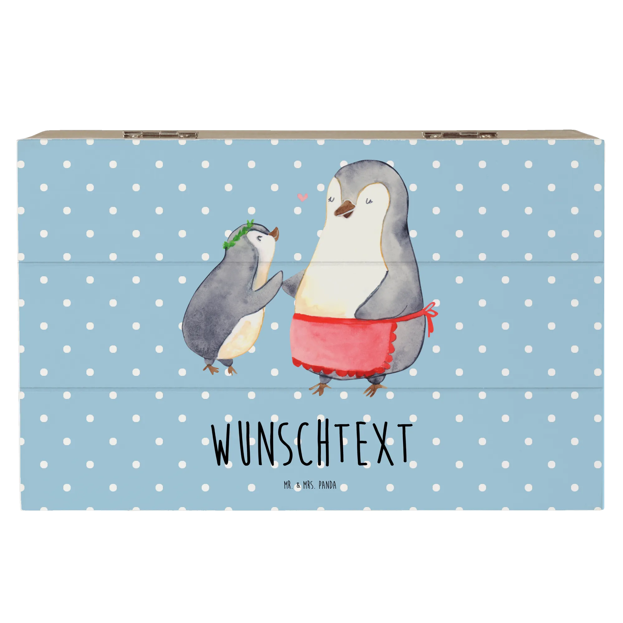 Die personalisierte Holzkiste mit dem süßen Motiv "Pinguin mit Kind" von Mr. & Mrs. Panda ist das perfekte Geschenk für alle Mütter, die ihre Erinnerungen stilvoll aufbewahren möchten. Diese wunderbare Schatzkiste ist nicht nur ein wunderschöner Hingucker in jedem Zuhause, sondern auch ein liebevoller Aufbewahrungsort für die kostbaren Schätze deines Lebens.