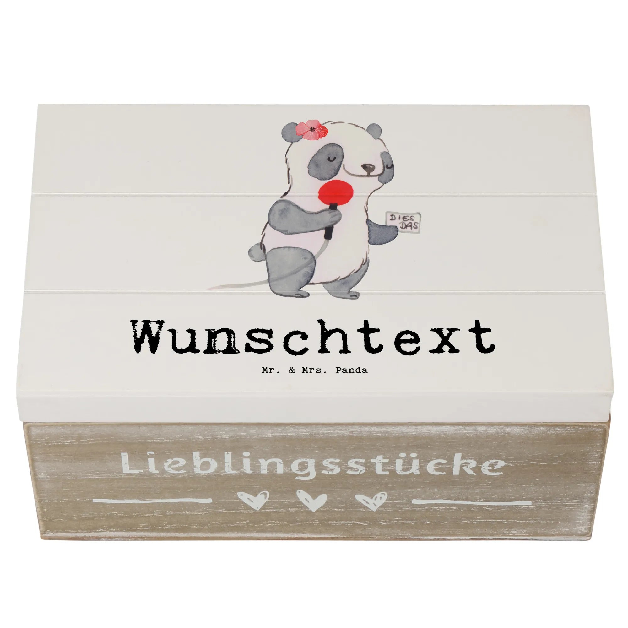 Die personalisierte Holzkiste "Pressereferentin mit Herz" von Mr. & Mrs. Panda ist das perfekte Geschenk für alle, die in der Pressearbeit tätig sind oder einfach eine besondere Wertschätzung erfahren möchten.
