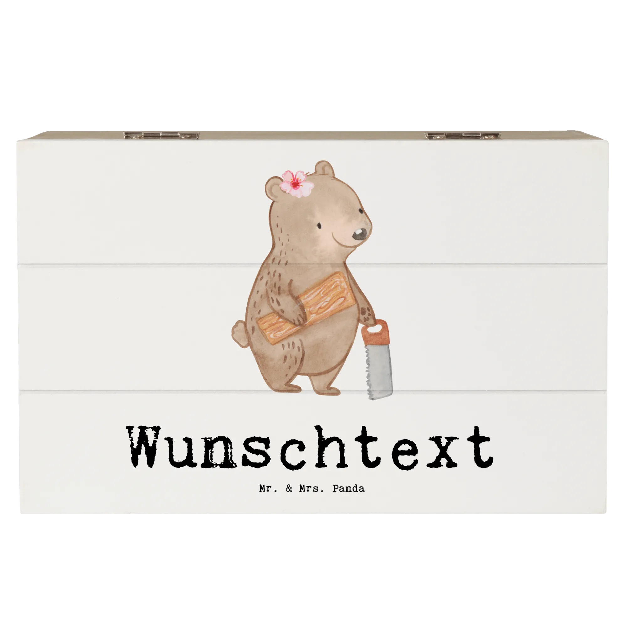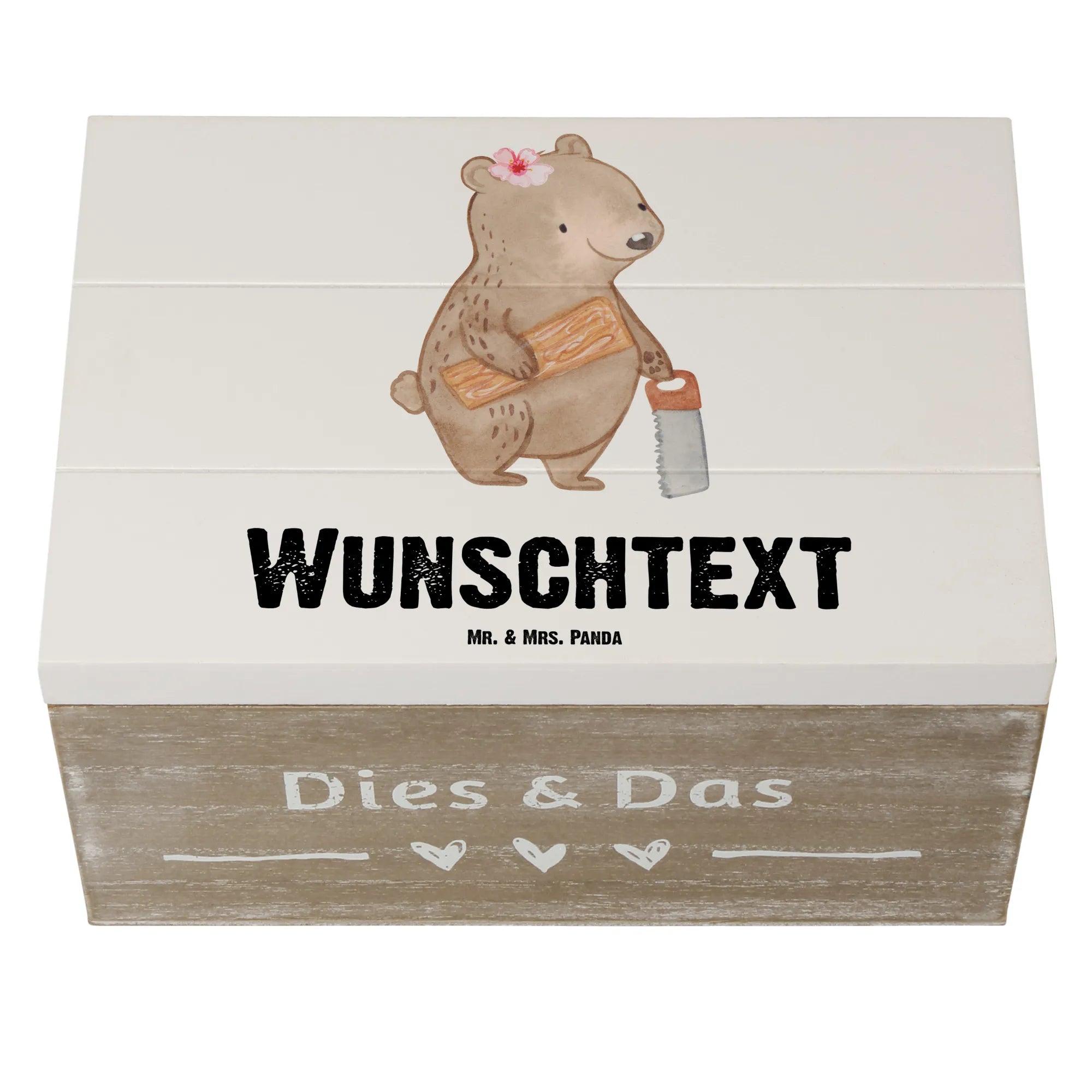 Ob zum Berufsjubiläum, zum Abschied oder einfach als Dankeschön – diese Kiste ist ein ganz besonderes Geschenk und bringt Freude in jede Lebenssituation. Das süße Motiv zeigt einen weiblichen Bären, der in der Hand eine Säge hält, und sorgt für ein Lächeln.