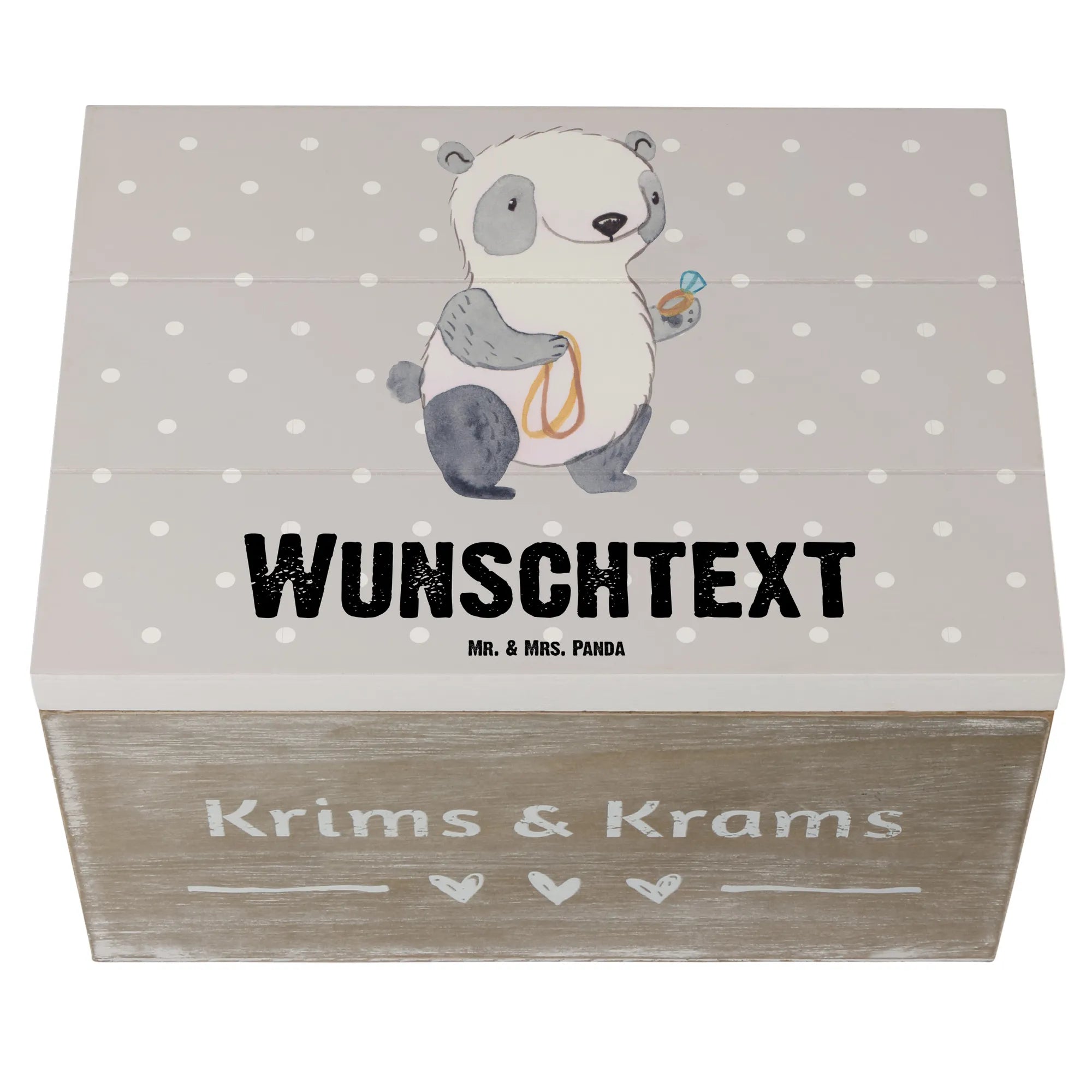 Die personalisierte Holzkiste Schmuckverkäufer mit Herz von Mr. & Mrs. Panda ist das perfekte Geschenk für jeden Schmuckliebhaber! Diese wunderschöne Kiste, hergestellt aus stabiler Holzfaser, bietet nicht nur einen hochwertigen Aufbewahrungsort für all die kleinen Schätze, die unser Schmuckverkäufer tagtäglich betrachtet, sondern ist auch eine stilvolle Dekoration für jedes Zuhause.
