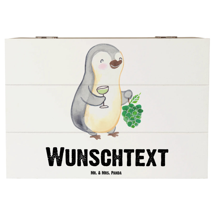 Die personalisierte Holzkiste 'Sommelier mit Herz' von Mr. & Mrs. Panda ist das perfekte Geschenk für Weinliebhaber und Sommeliers. Diese wunderschöne Kiste ist nicht nur ein idealer Aufbewahrungsort für all deine wertvollen Erinnerungen, sondern auch ein einzigartiges Geschenk für Kollegen, Freunde oder Familie. Mit einem süßen Motiv, das einen Pinguin zeigt, der Weintrauben und ein gefülltes Weinglas hält, bringt diese Kiste Freude und Stil in jedes Zuhause.